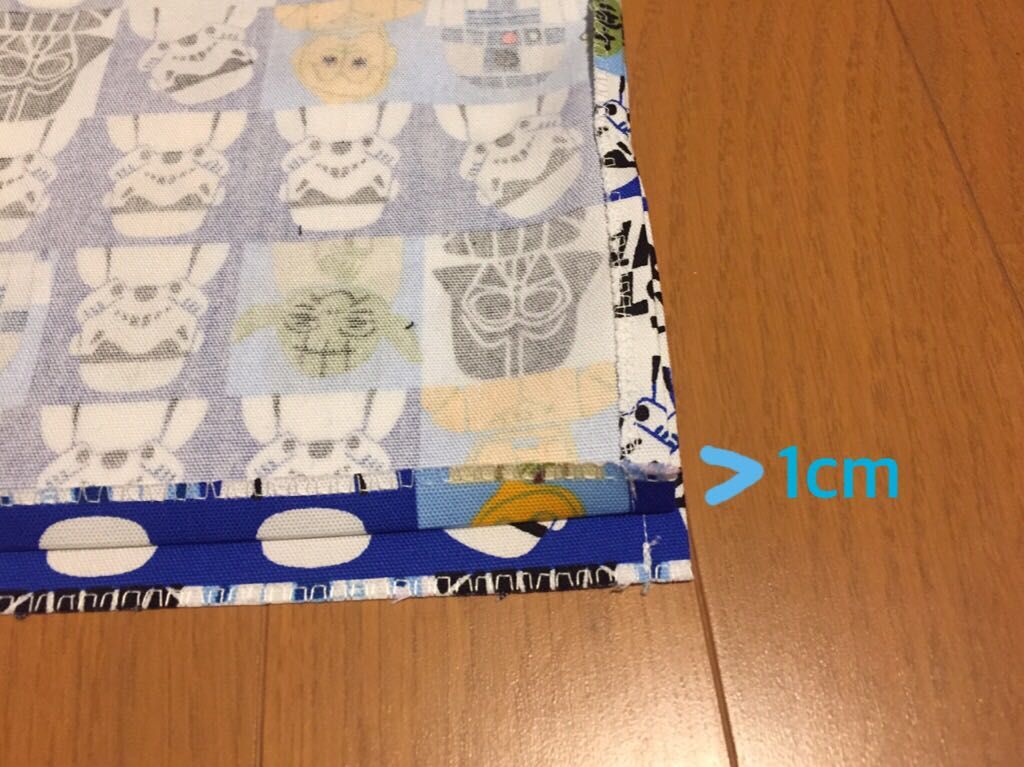 更に3cm折ってアイロンをかけ、三つ折り完了です。