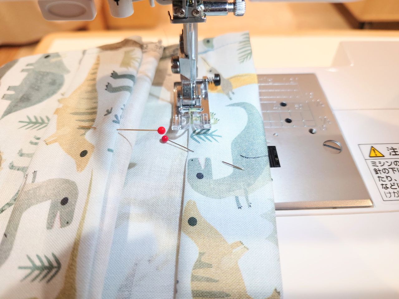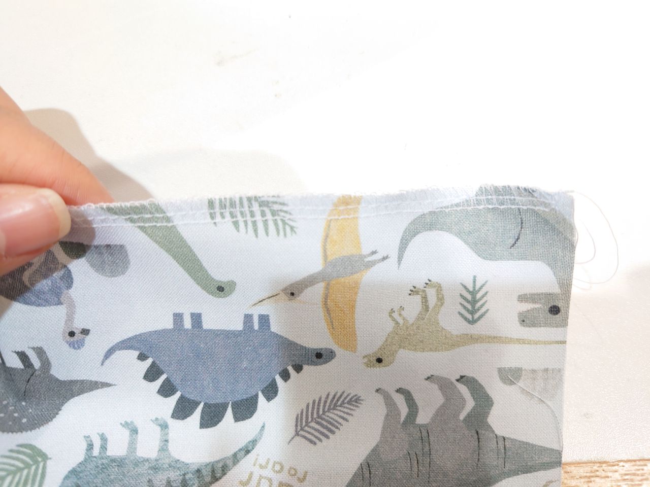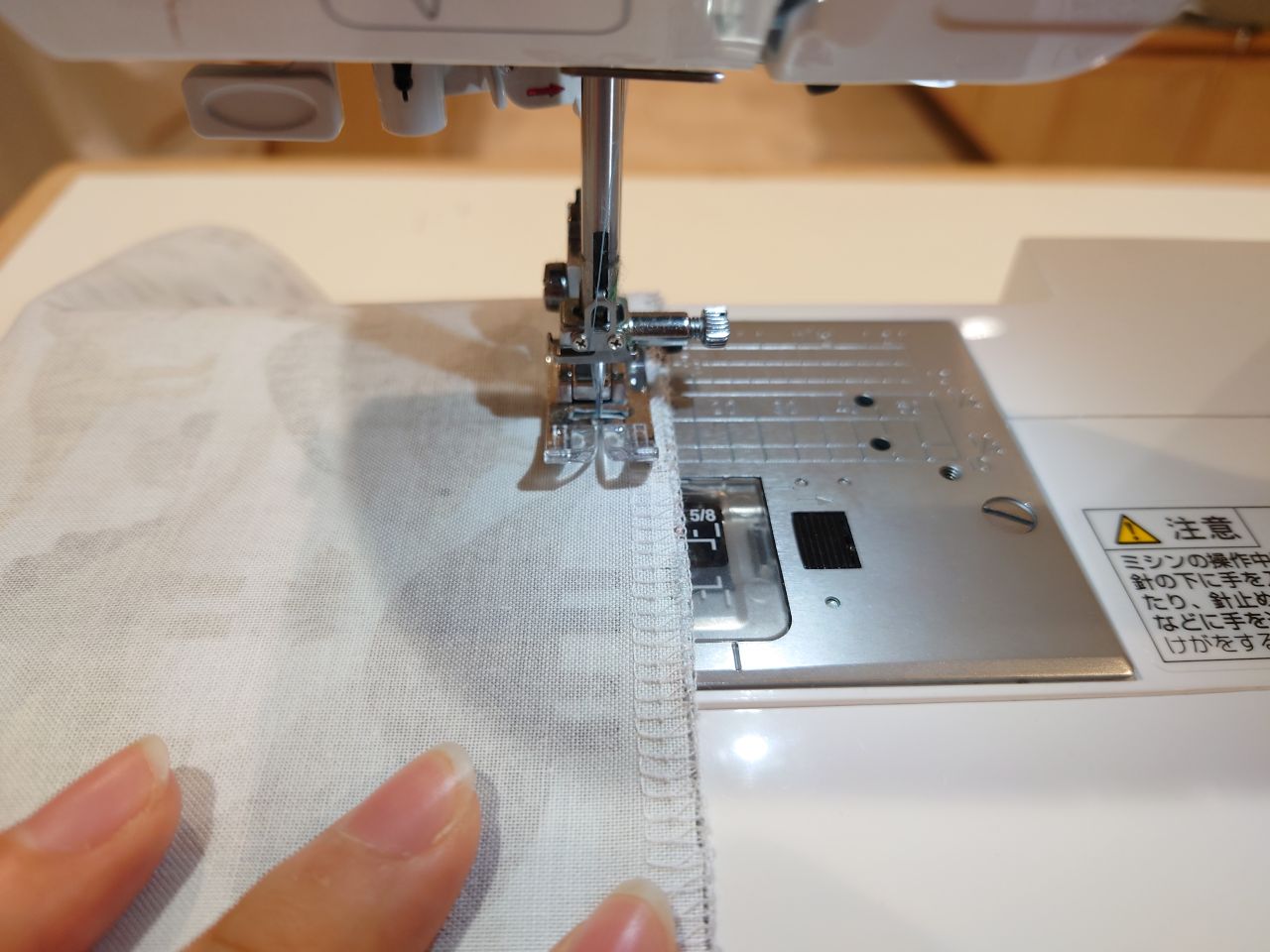 ④本体布の両脇をロックミシンまたは裁ち目かがりミシンをかける