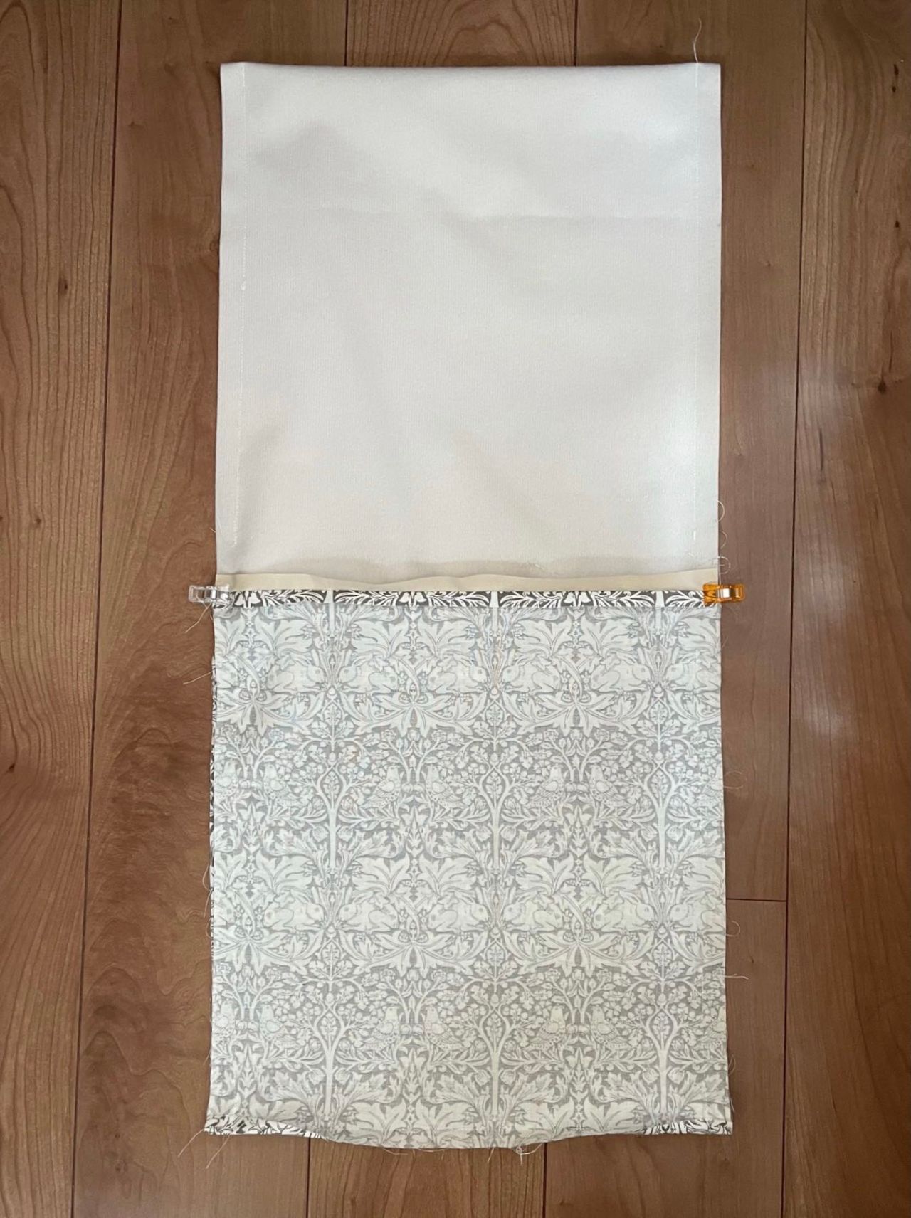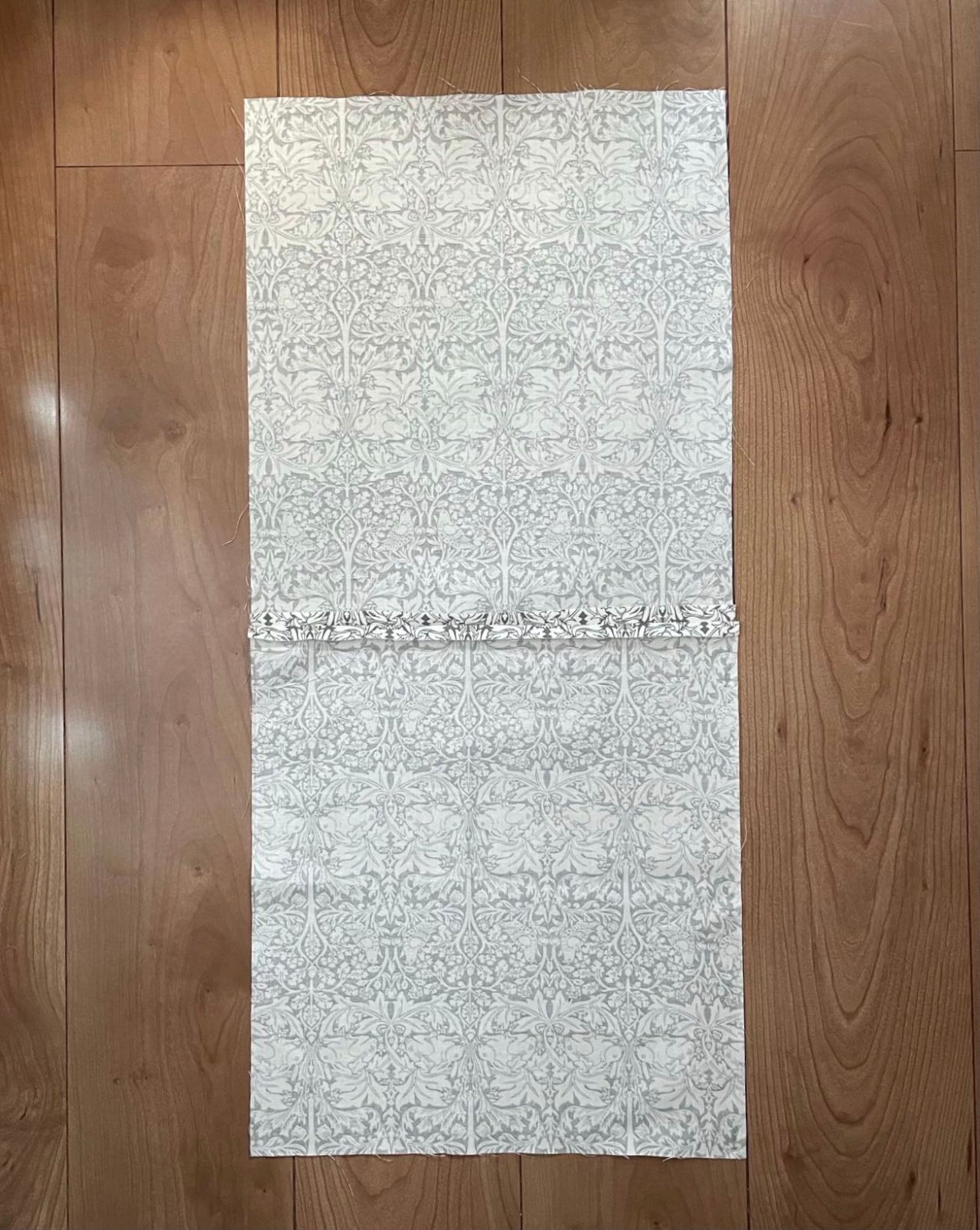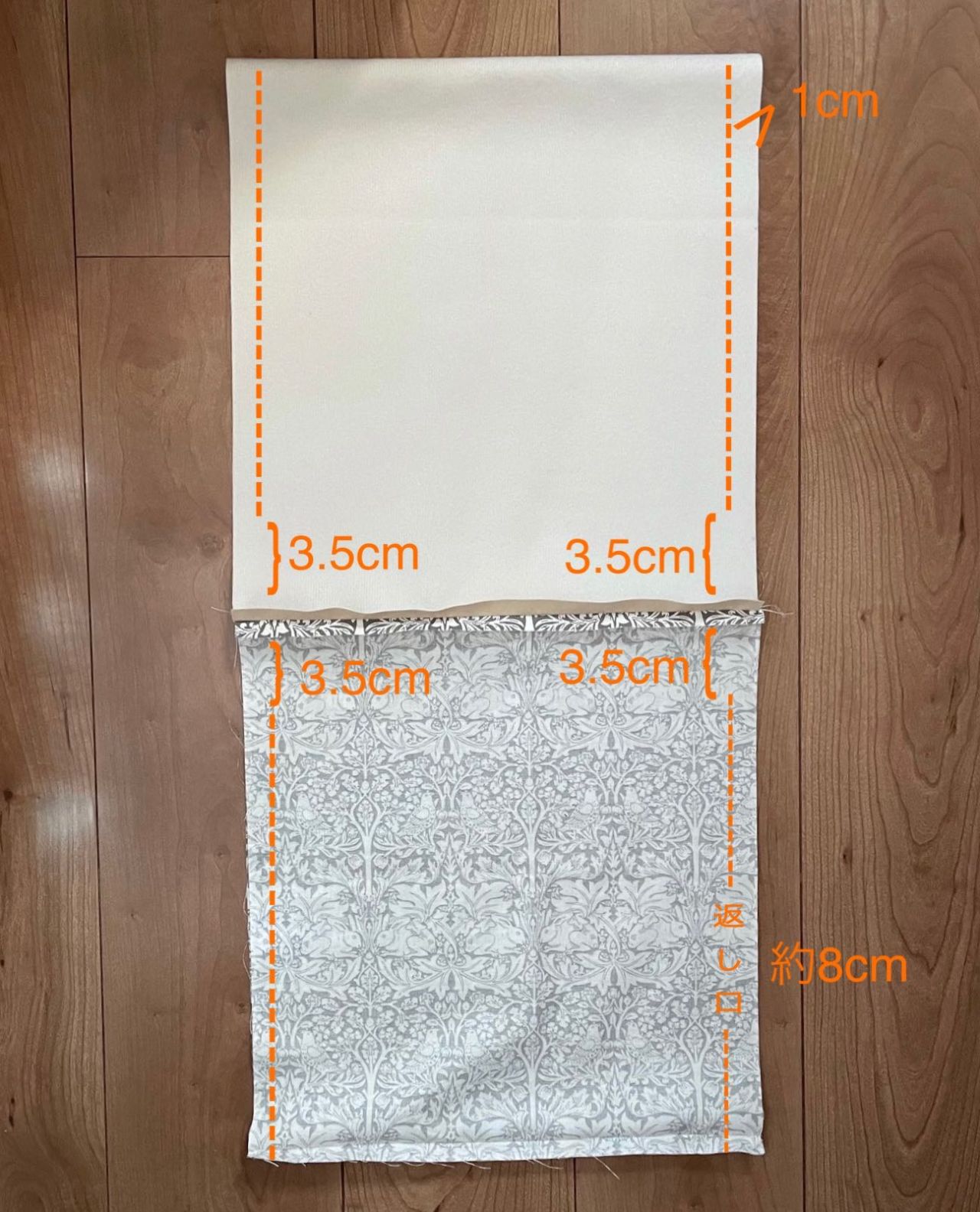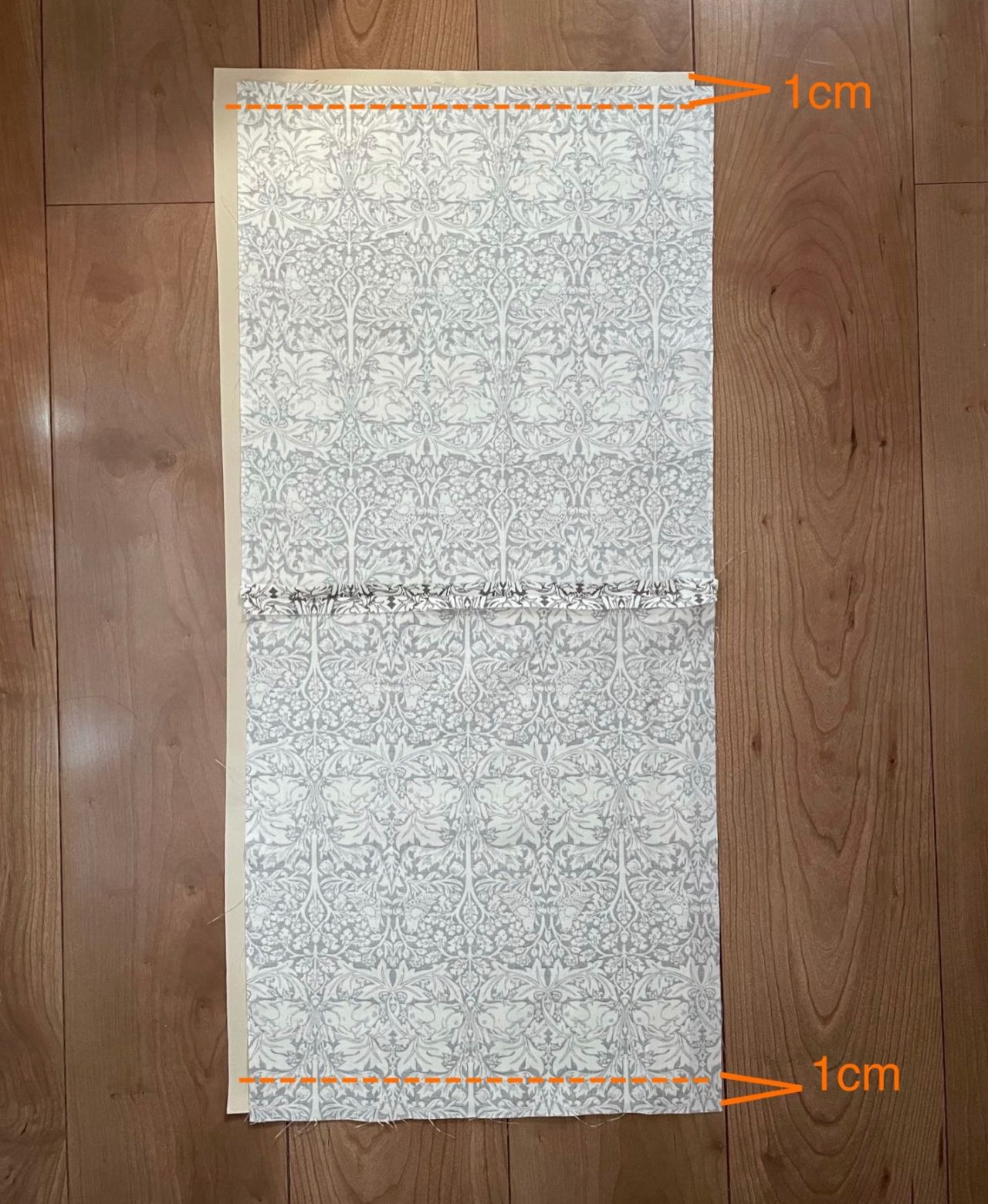 表裏布を中表に合わせて、上と下ぬい代1cmで縫い合わせます。