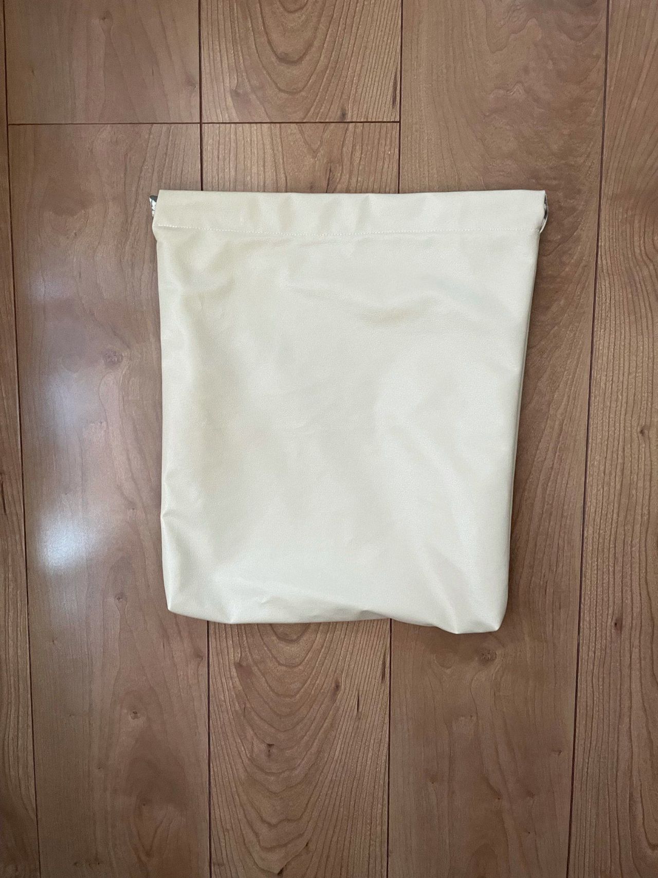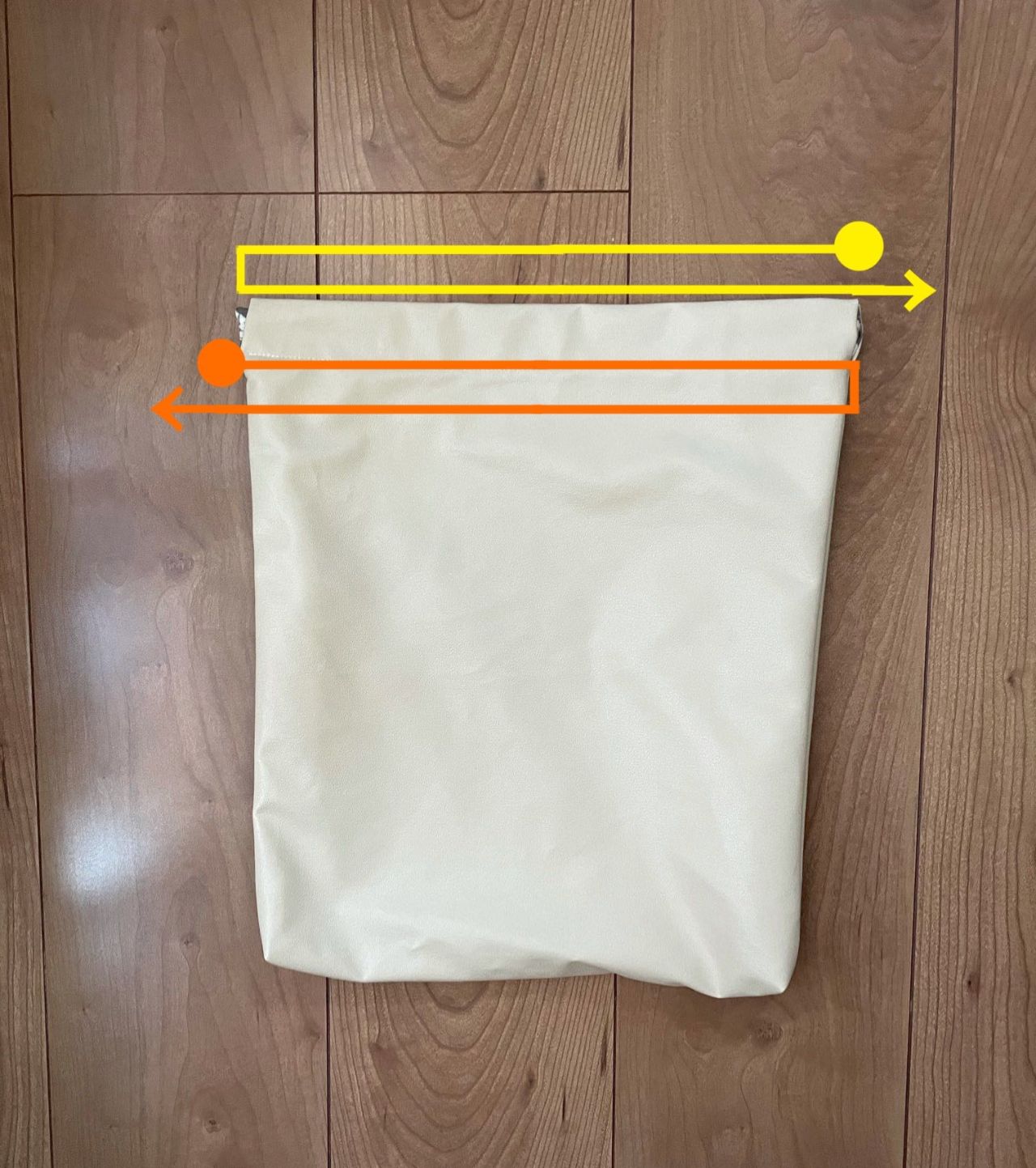 150cmの紐を半分に切り、1本ずつ袋に通します。