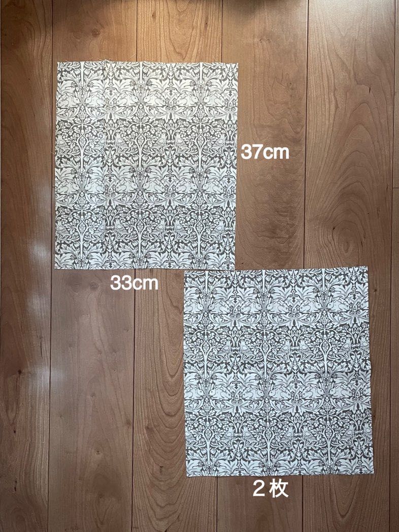 →上下柄向きがある生地の場合は 縦37cm×横33cm 2枚