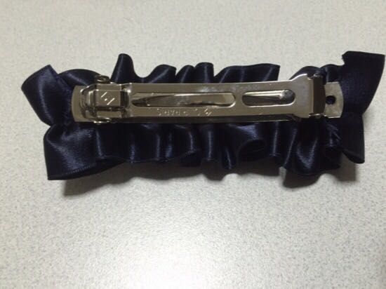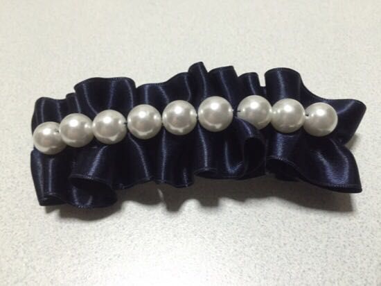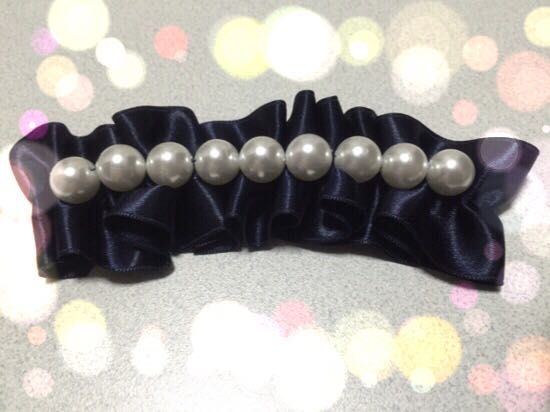 ⑥しっかりとリボンにパールが固定されたらバレッタとリボンをボンドでくっ付けます。