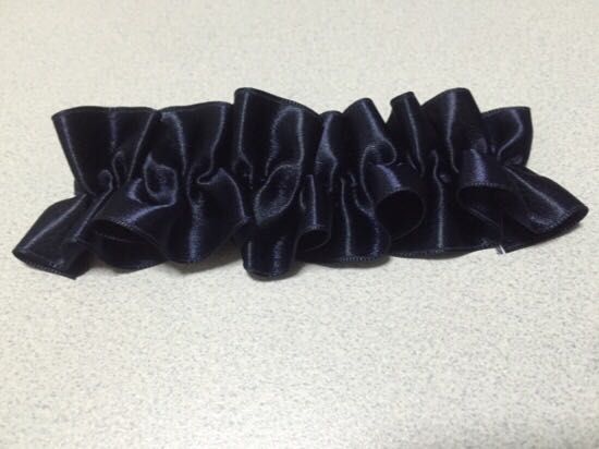 裏の折り込んだ所から針と糸でリボンの真ん中あたりを並縫いをしていき、ギャザーを寄せていきます。