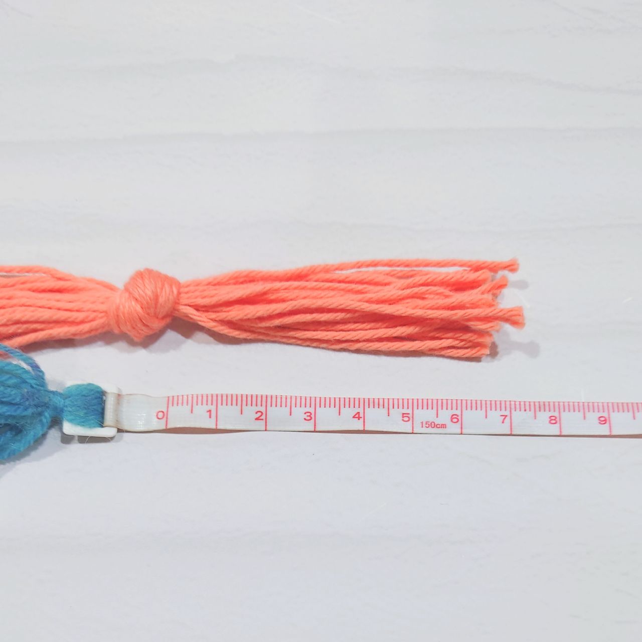 ⑧ お好みの長さになったらひと結びして、糸束をきれいに切り揃えます。
