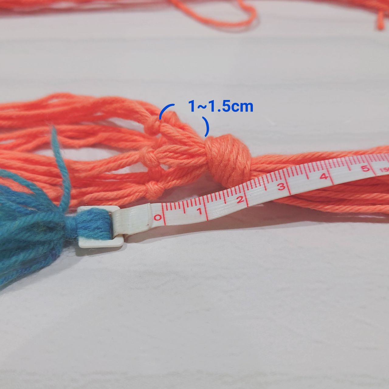 ③ 4本ずつとり、1~1.5cm幅でひと結び→6回繰り返します。
