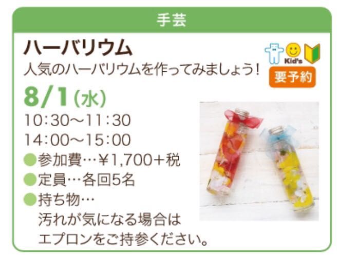 8月1日(水)開催のハーバリウム講習会についてお知らせです。