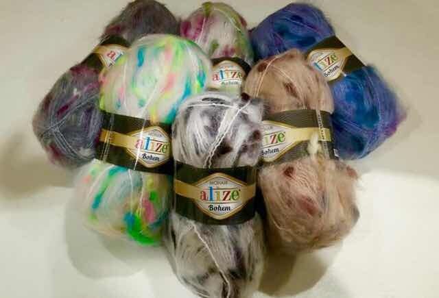 “モヘアボヘム”は輸入糸ならではの色がとっても魅力的。毛足も長く、フカフカ間違いなし!