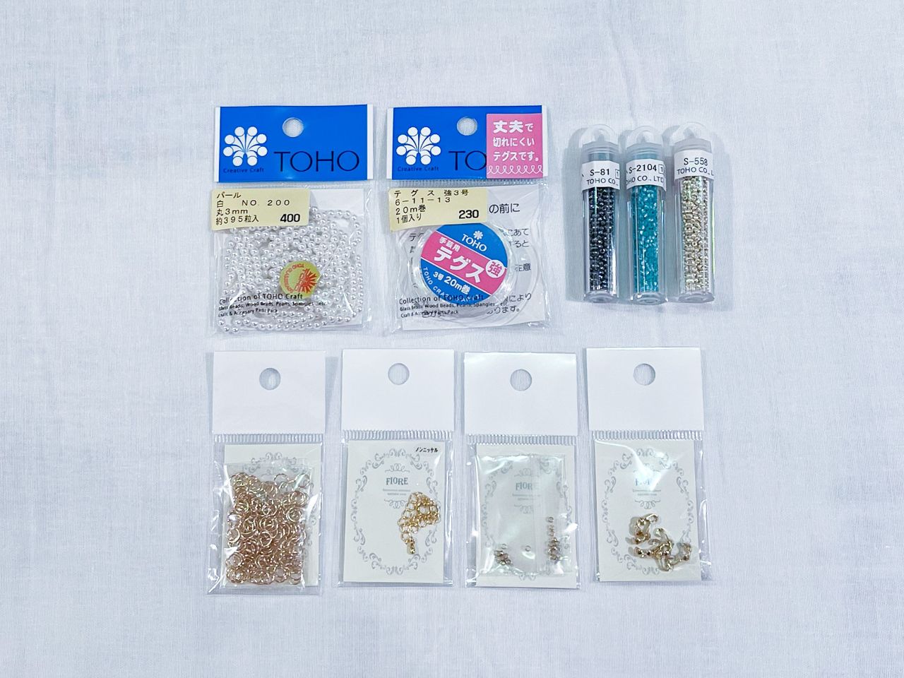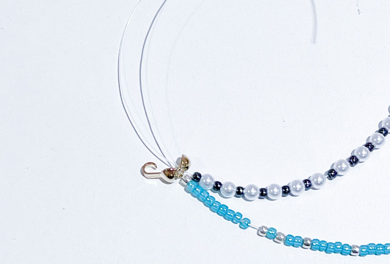 今回は2本のテグスにビーズを通して2連のネックレスを作ります。