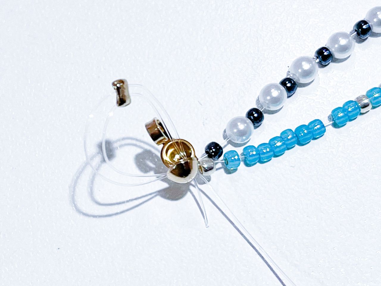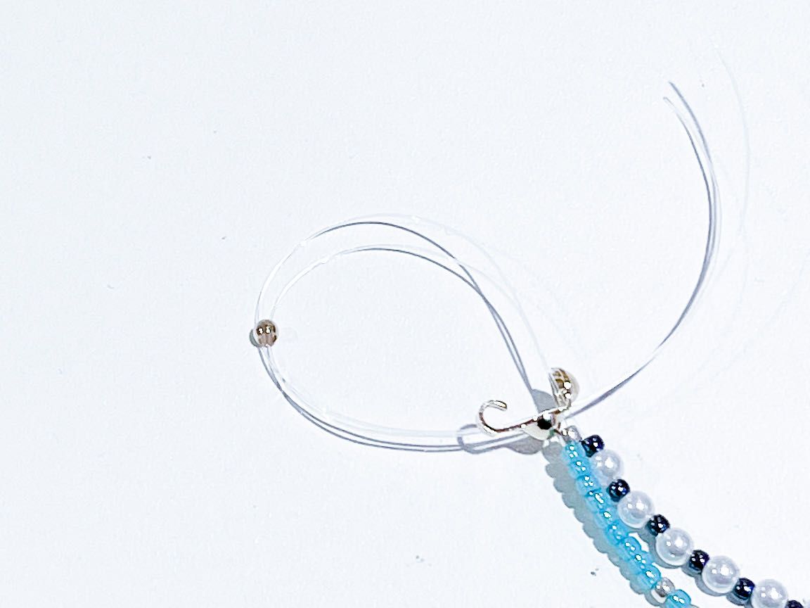 ②好みの長さまでビーズを通したら、ボールチップをテグスに通します。