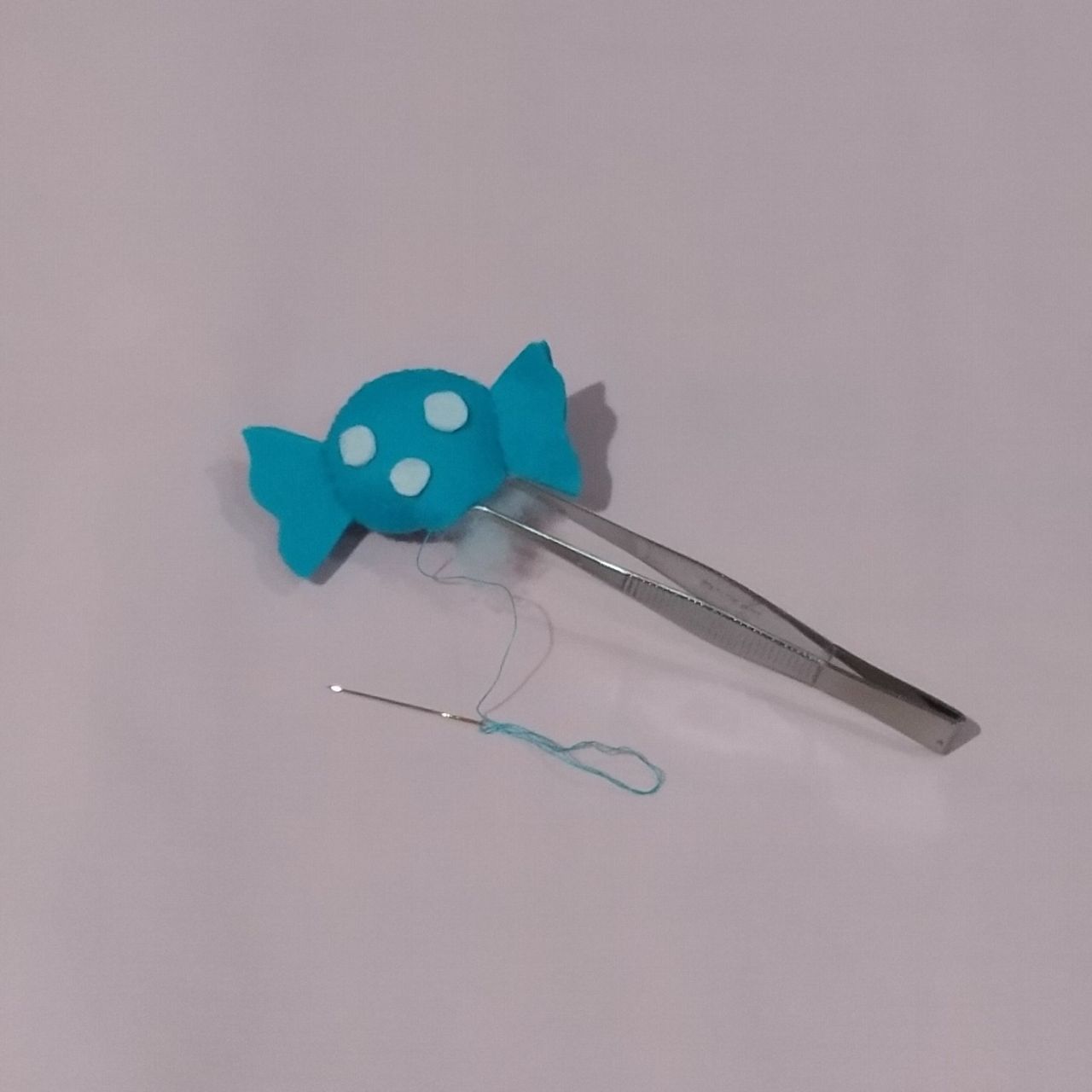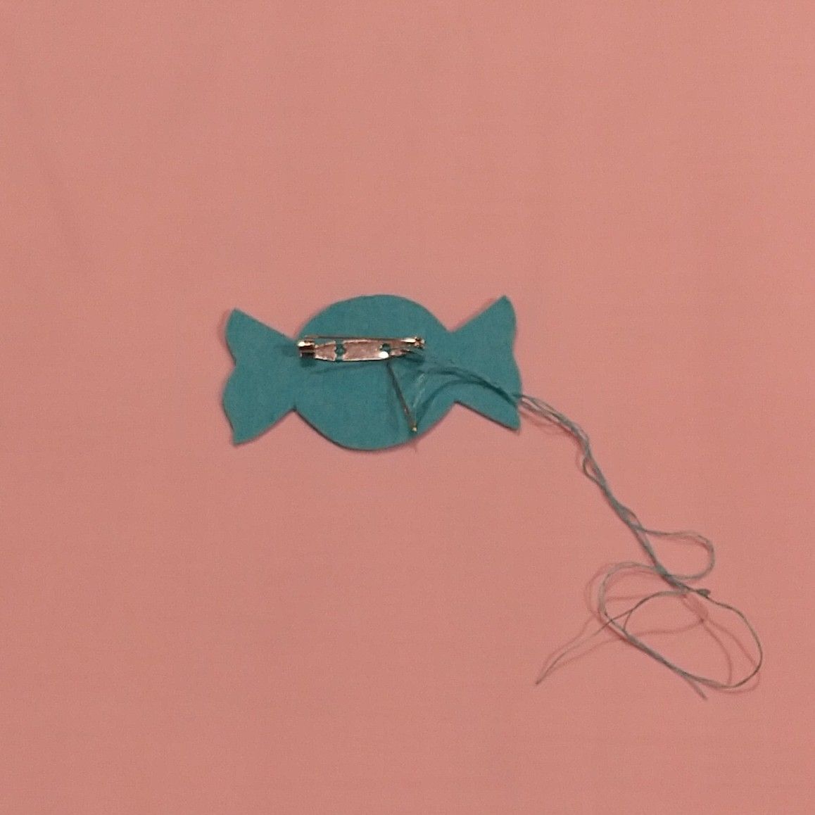 ⑤裏側になるフェルトに先に造花ピンをつけておきます。
