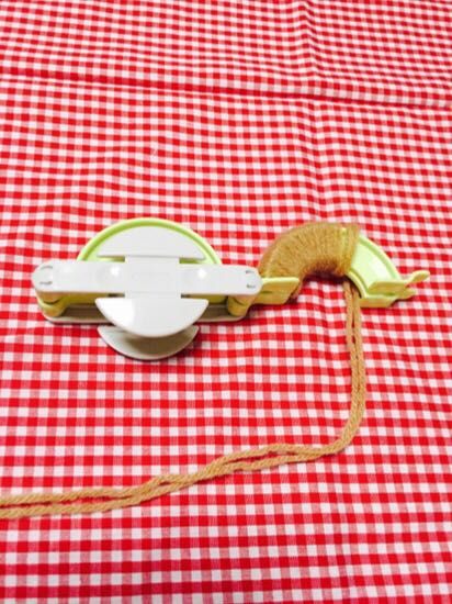①スーパーポンポンメーカーへ、毛糸を本の通りに巻く。