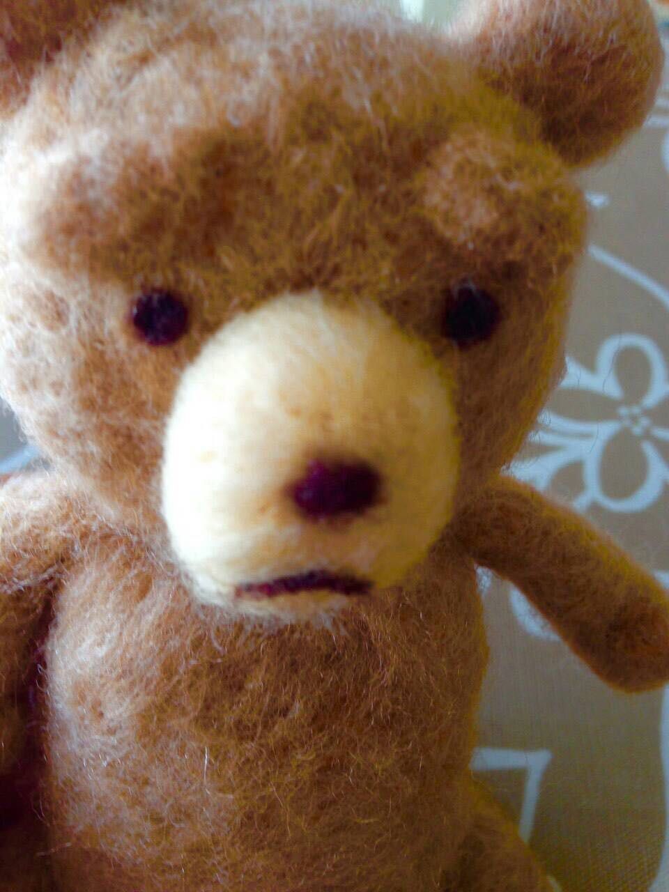 公開中のTEDのつもりで作り始めましたがちょいワルというより不安げなクマになっちゃいました(^^)