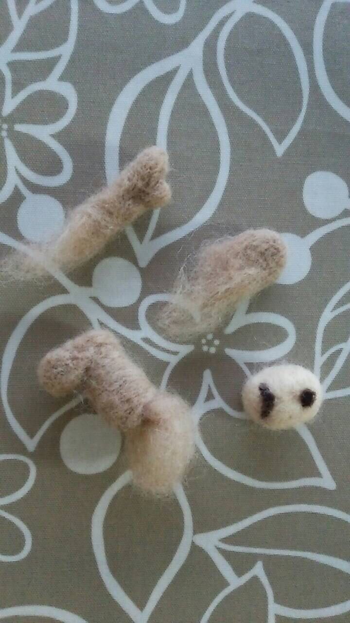 次にパーツをチクチク…パーツを作るときはジョイントさせる部分をふわふわのままに残しておきます