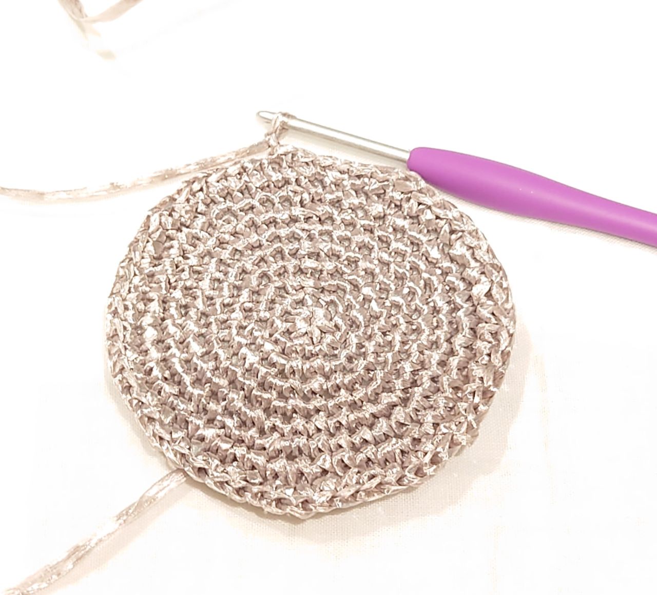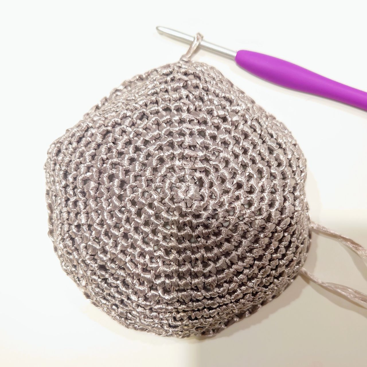 毎段6目ずつ増し目をし、細編みで編みます