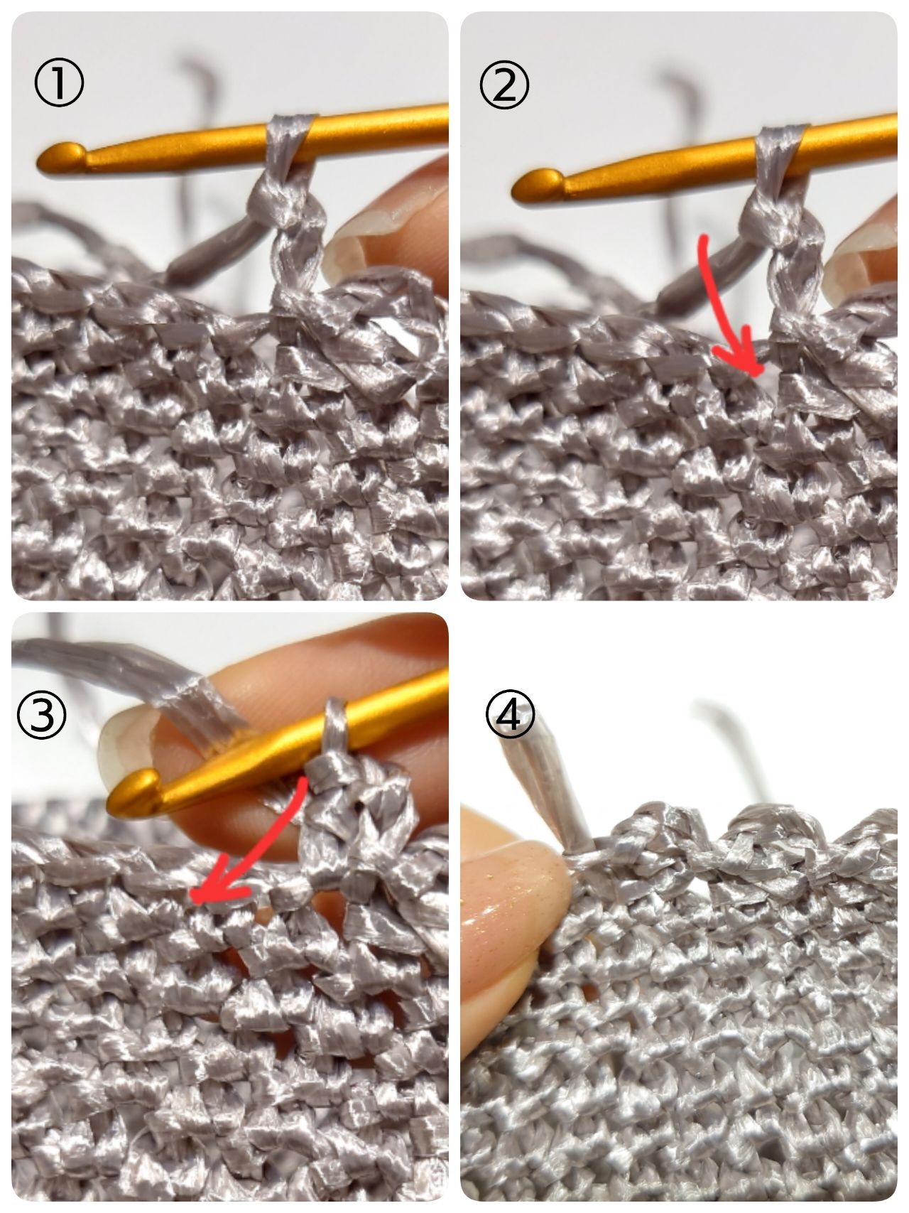 ④①〜③を繰り返し、一周編みます