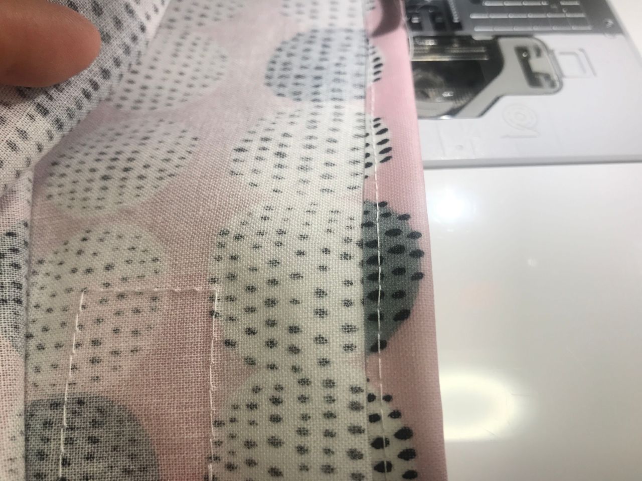 ③中表に合わせ、両脇と底を縫い代1cmで縫い合わせる。