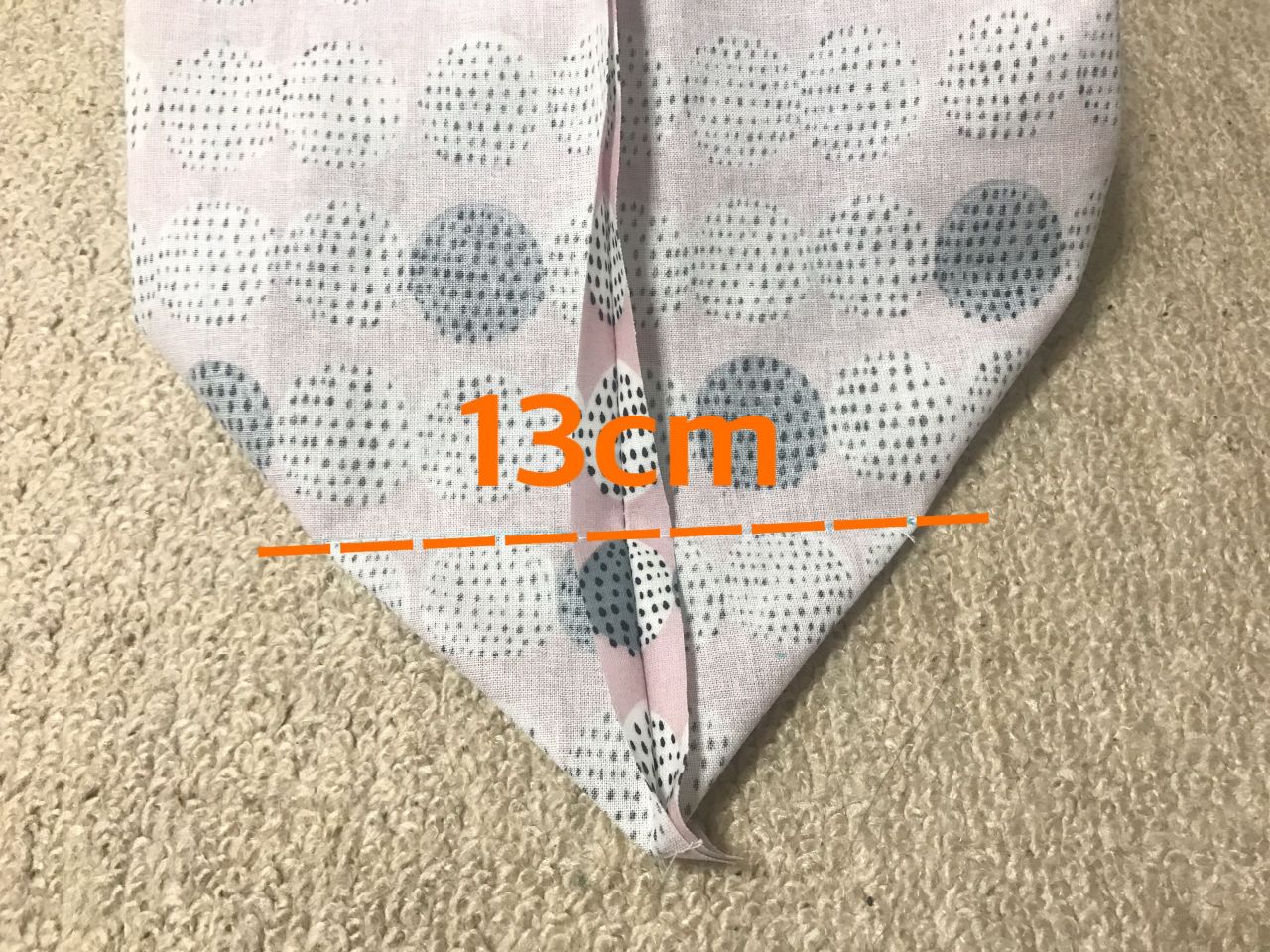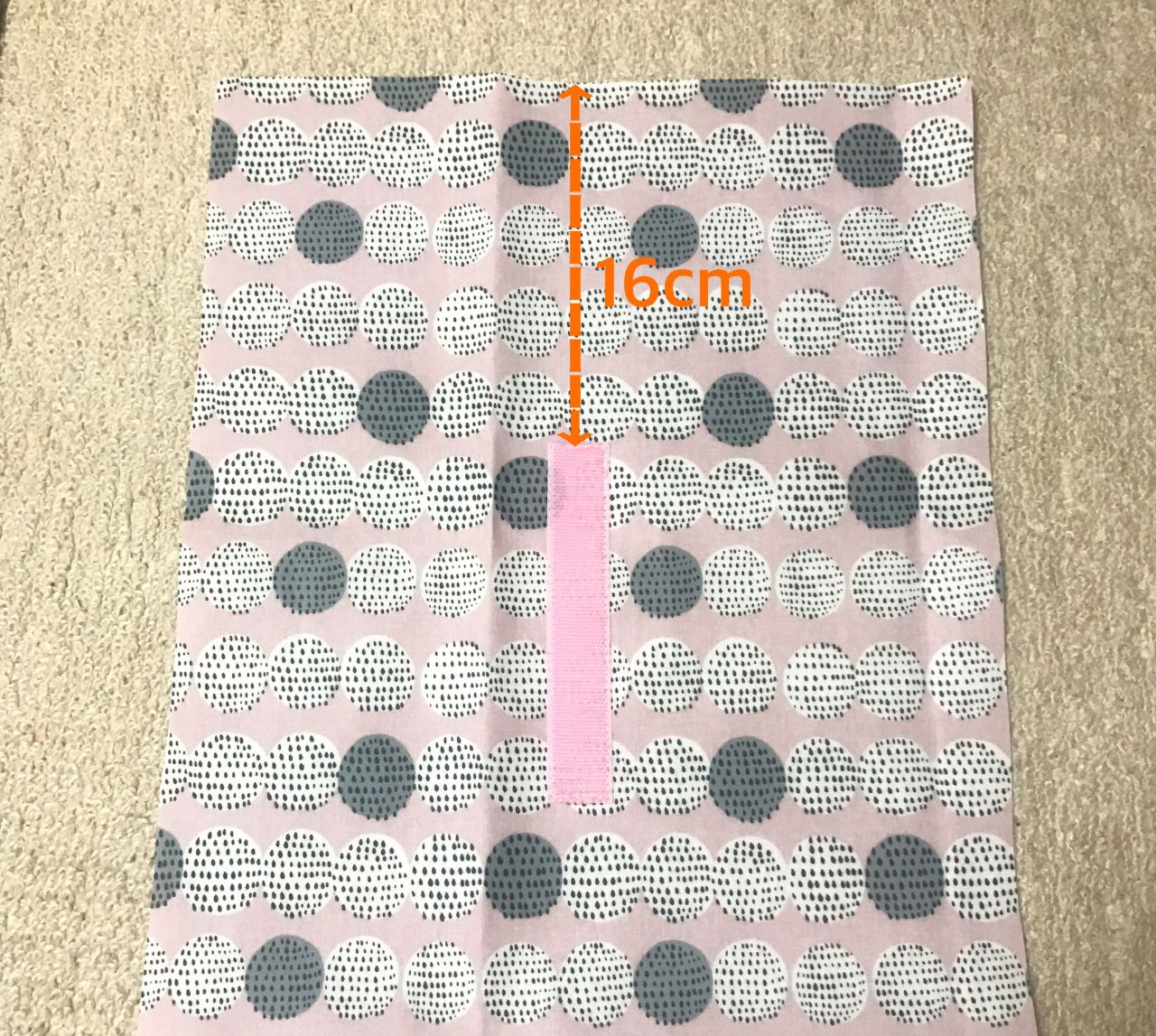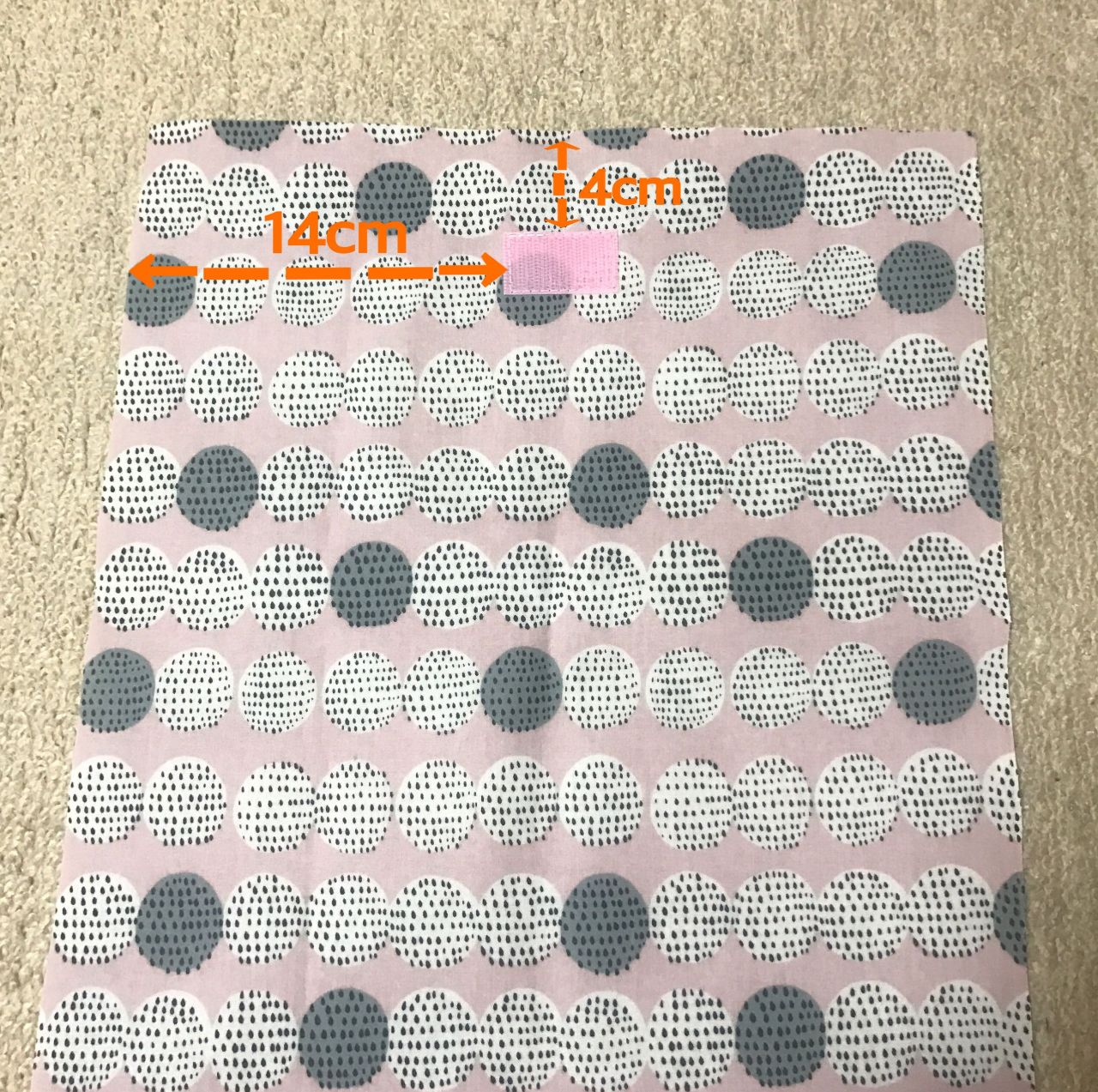 ②マジックテープを、それぞれ↓の位置に縫い付ける。