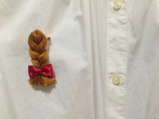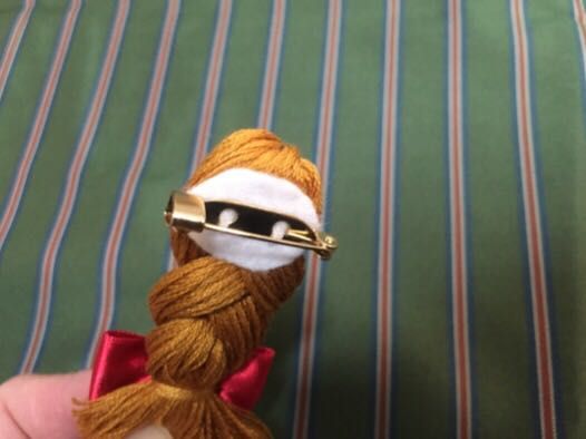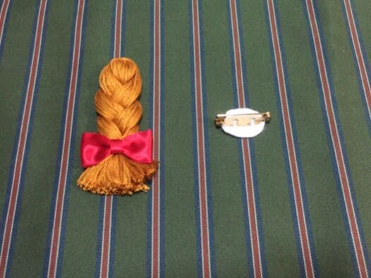 ⑦ブローチピンを三つ編みの裏にボンドで付けます。