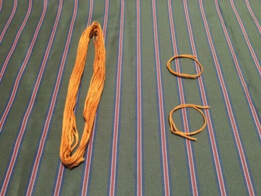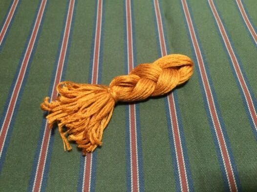 ②35cmに切った1本で、刺しゅう糸の真ん中をしっかり固結びします。