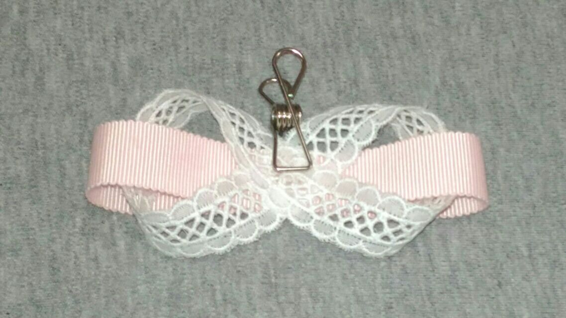 グログランリボンを24mm巾に、レースを10mmのピコットサテンリボンに変更したら大人可愛いバレッタも作れます♪