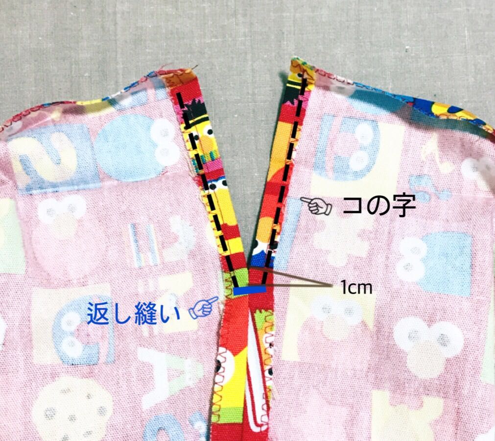 あきどまりの部分を1cmあけてコの字に縫います。
