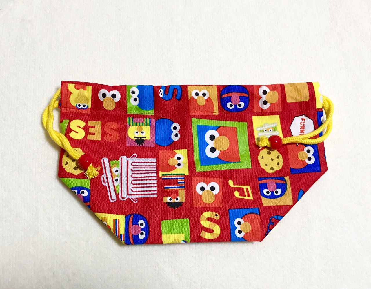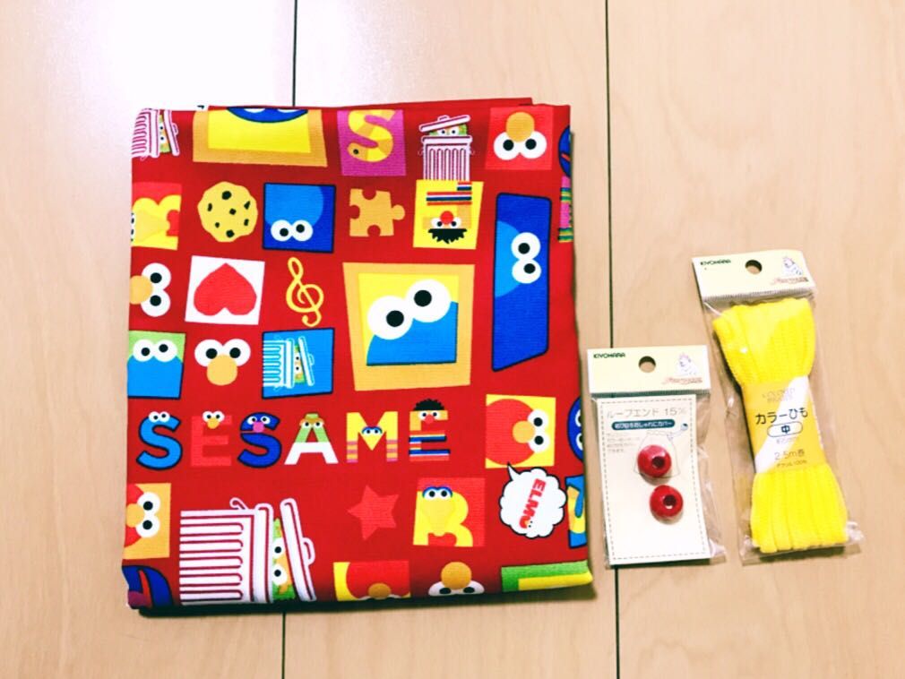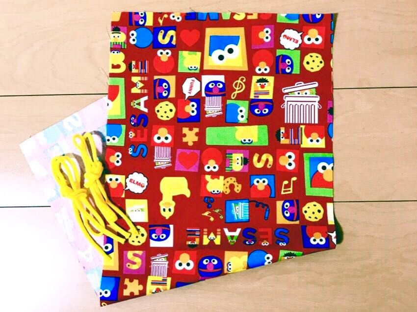今回は生地の柄に方向がないポップなセサミストリートの生地でお弁当袋を作って行きます(^_^)