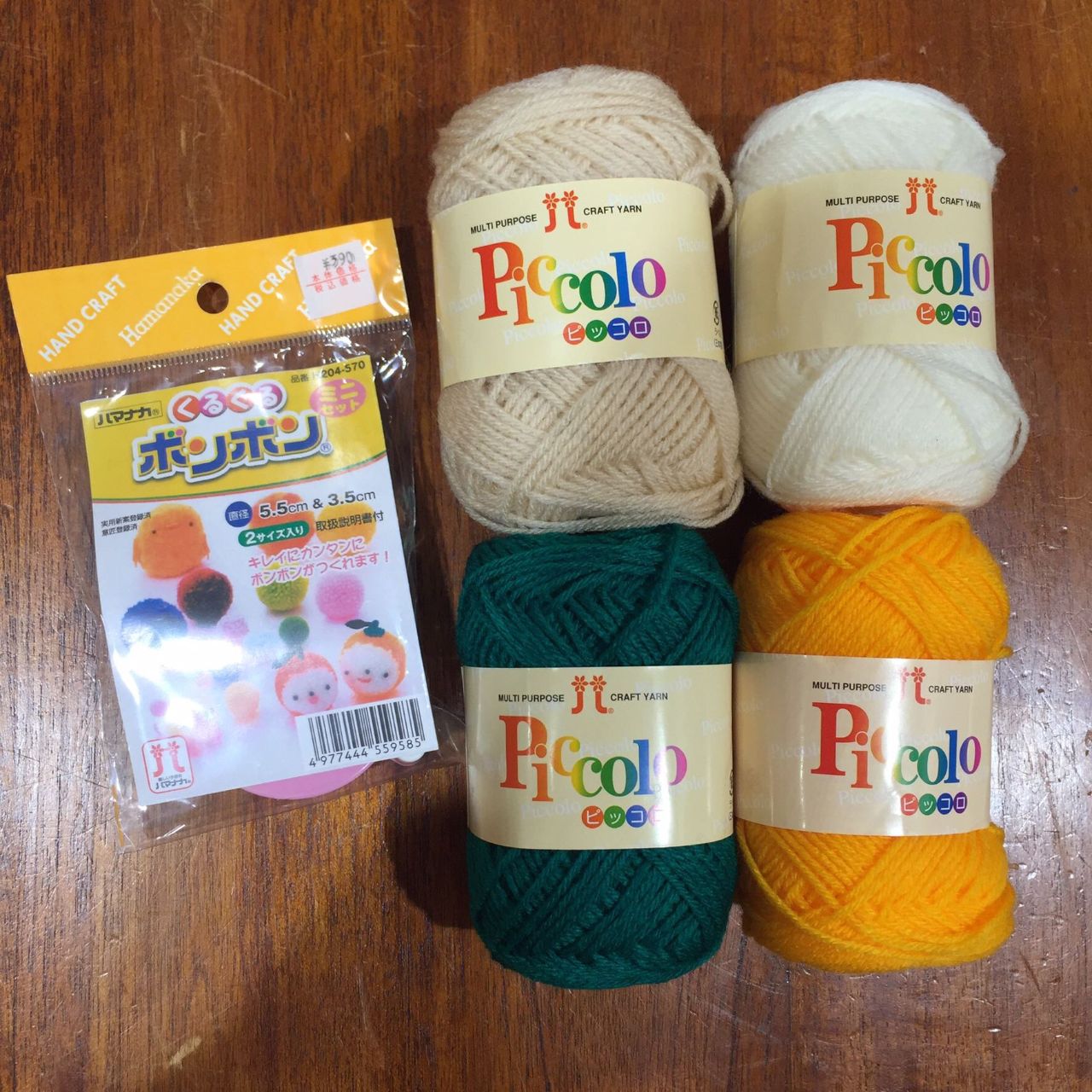こちらの毛糸をボンボンメーカーに巻いて、ボンボンを作り、目、鼻、ほっぺたで付けるだけでとってもかわいいマスコットが作れますよ♬