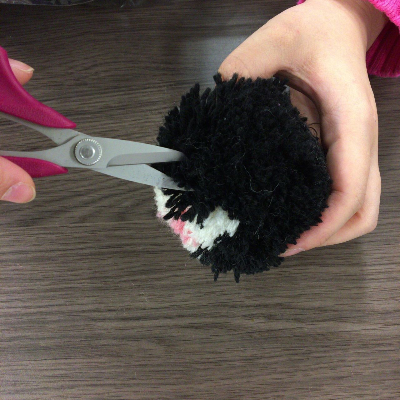 ②切り込みを入れて、溝にタコ糸を縛りポンポンを作る