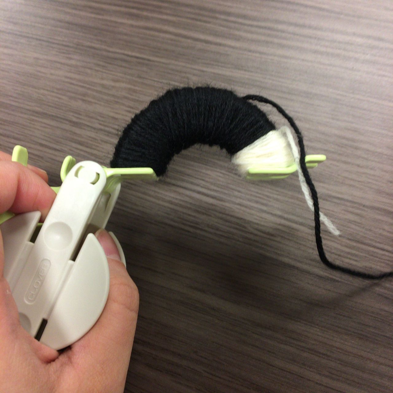 ①ポンポンメーカーに指定された場所に毛糸を巻きつける