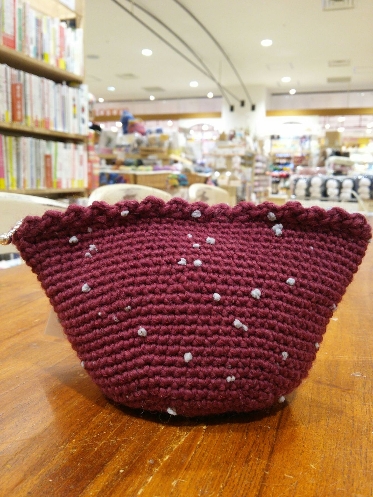 夏に大好評のエコアンダリヤのポーチの毛糸版。