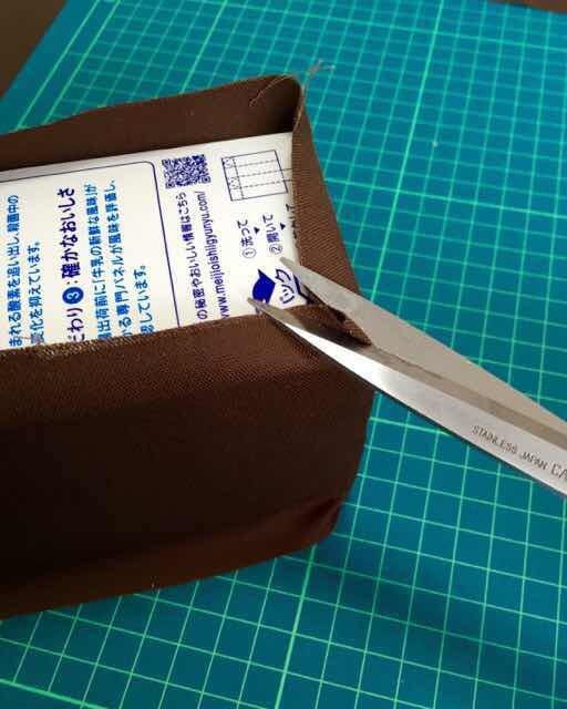 ※あまり薄い生地、淡いカラーの生地だと牛乳パックの柄が透けるので注意!