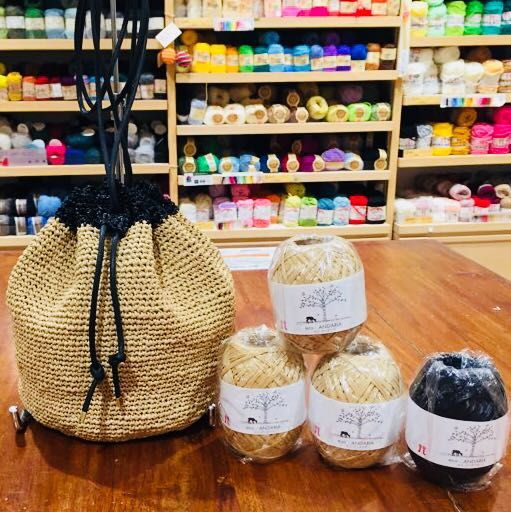 2色の引き揃えのトートバッグは23番色と42番色をそれぞれ2.2玉づつで編んでいただけます。