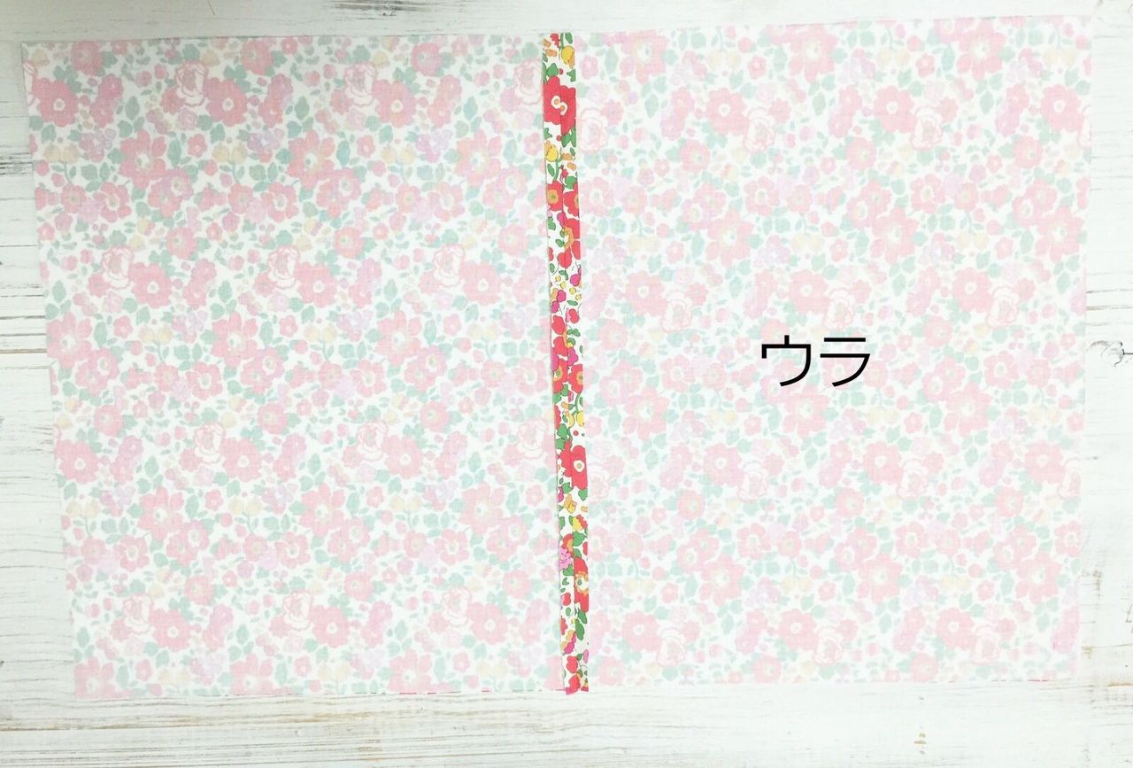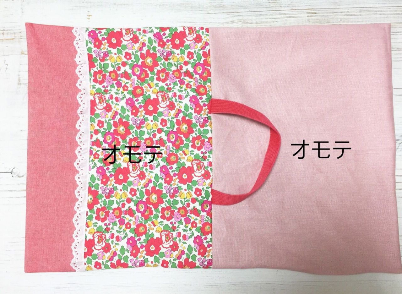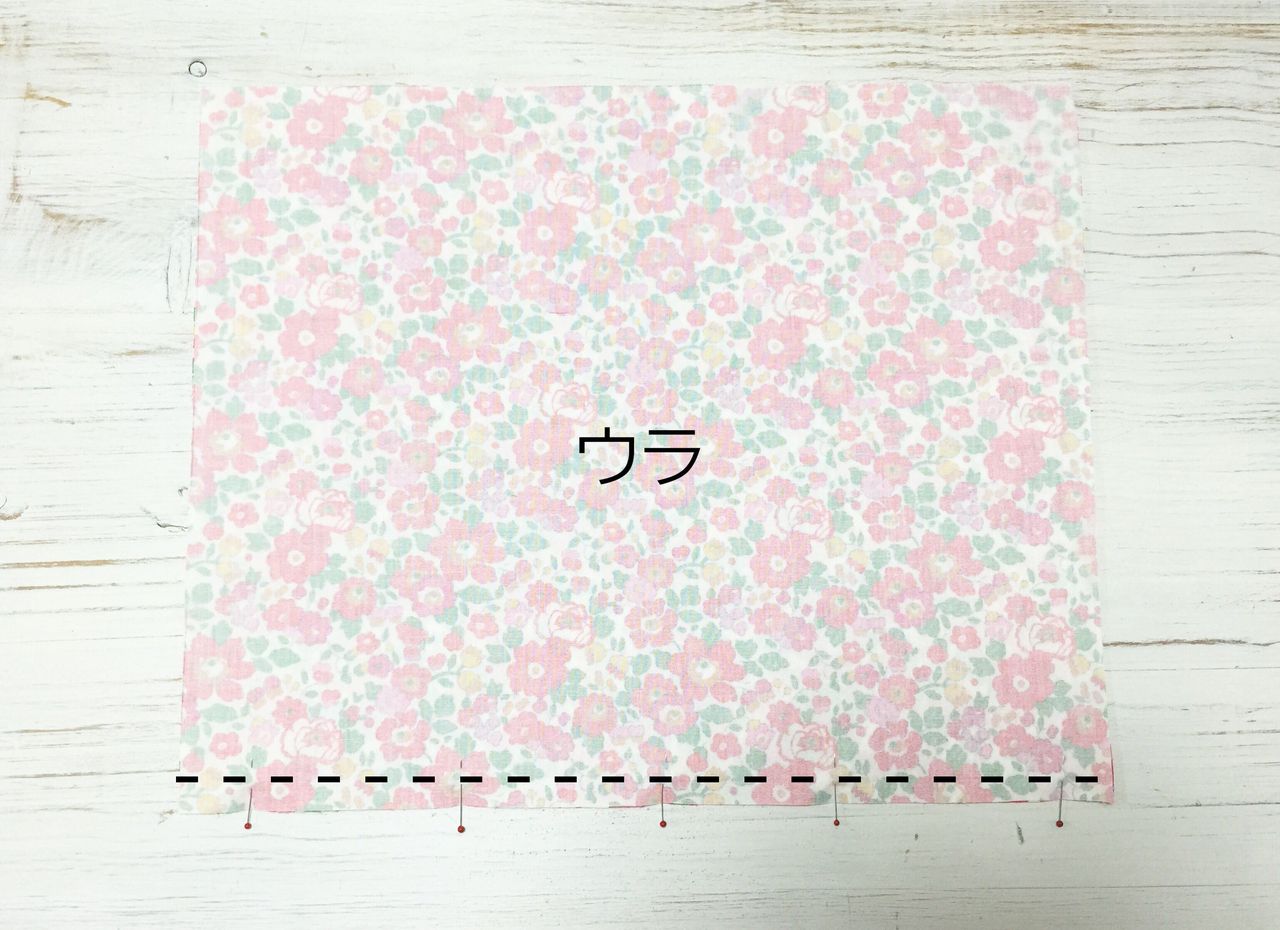 ②リバティを中表(柄の向きに気をつける!)に合わせて底から1㎝の所を縫い、縫い代をアイロンで割る