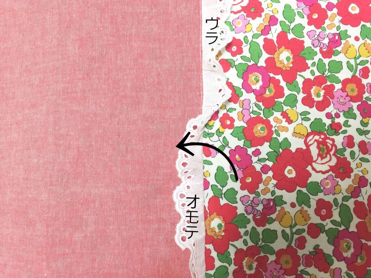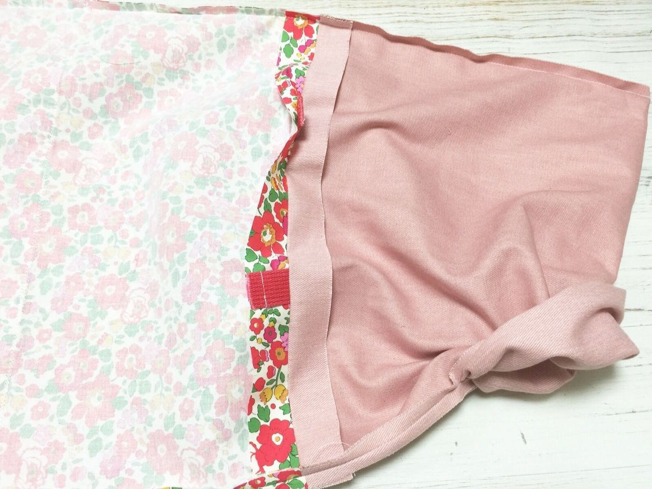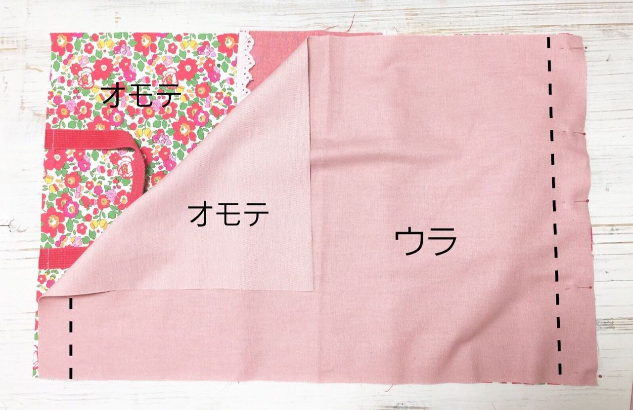⑦表布と裏布を中表に合わせて、上下3センチのところを縫います。