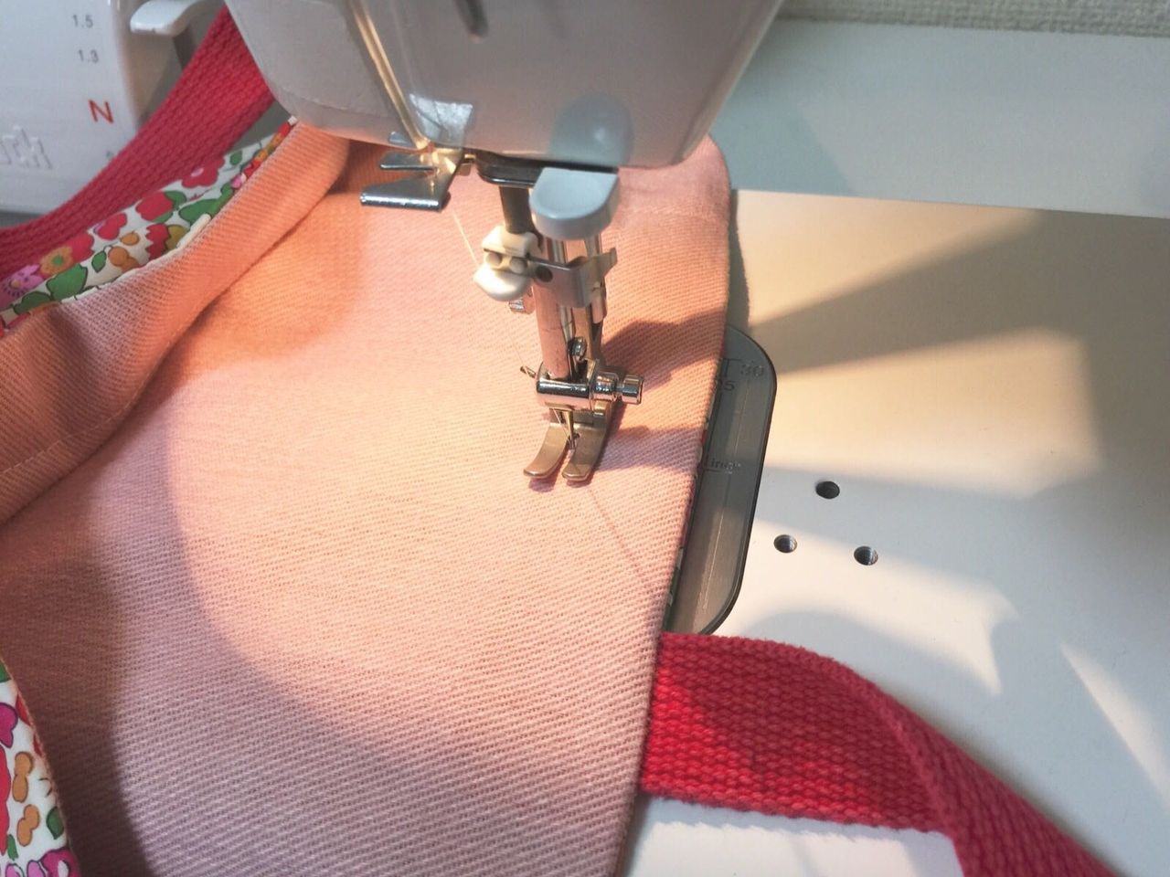 ①⓪返し口をとじて、アイロンで整え、入れ口から2.5㎝のところををぐるりと一周縫って完成です。