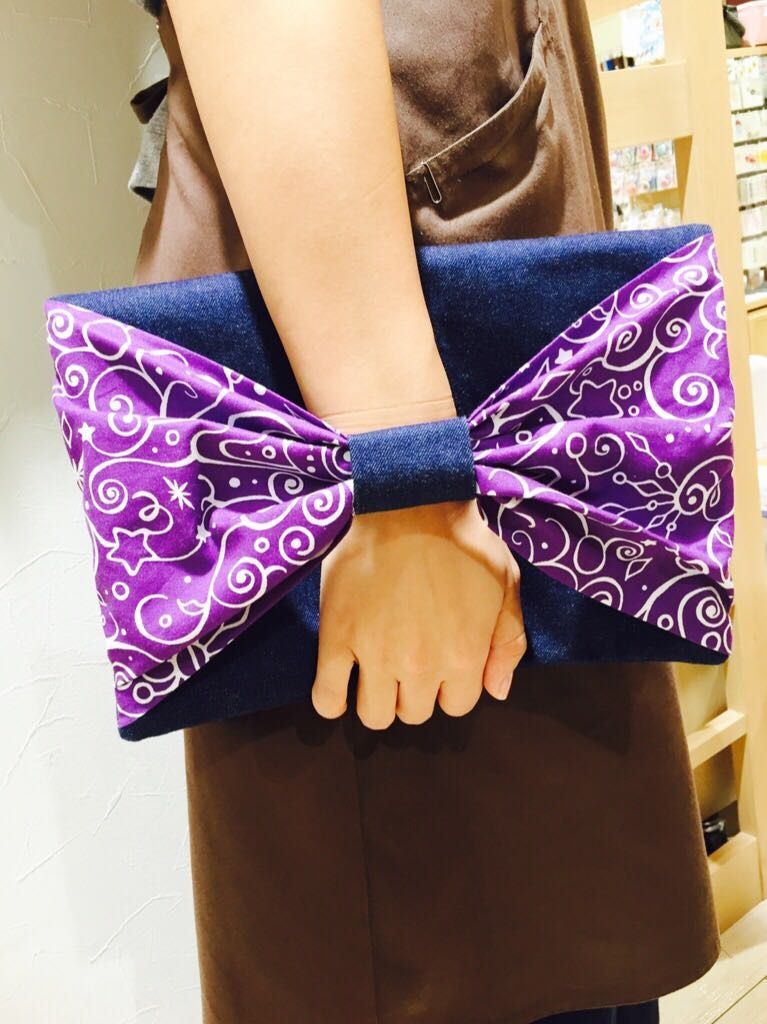 とってもかわいい生地が入荷しております!当店ではクラッチバッグになって飾ってあります(*^^*)
