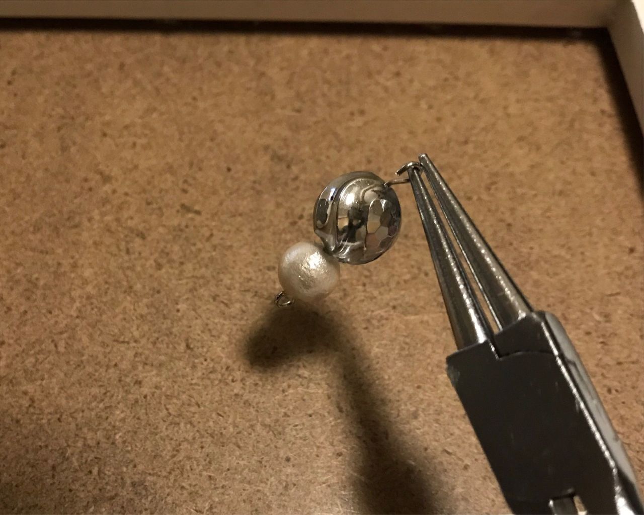 ④ピアスパーツとビーズを繋ぎます。
