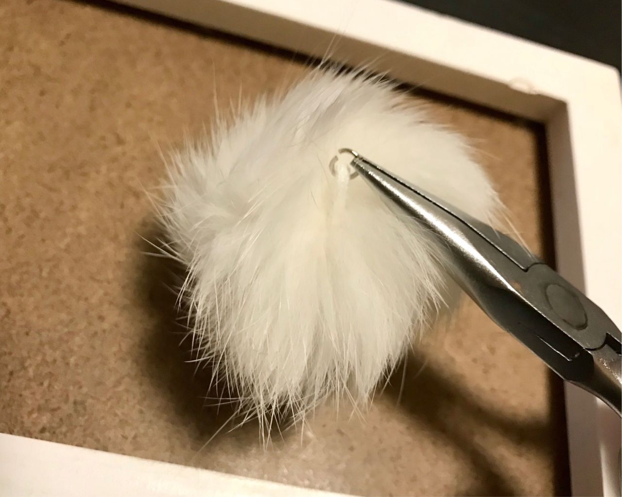 ③ファー梵天の中心に丸いゴムが付いているので