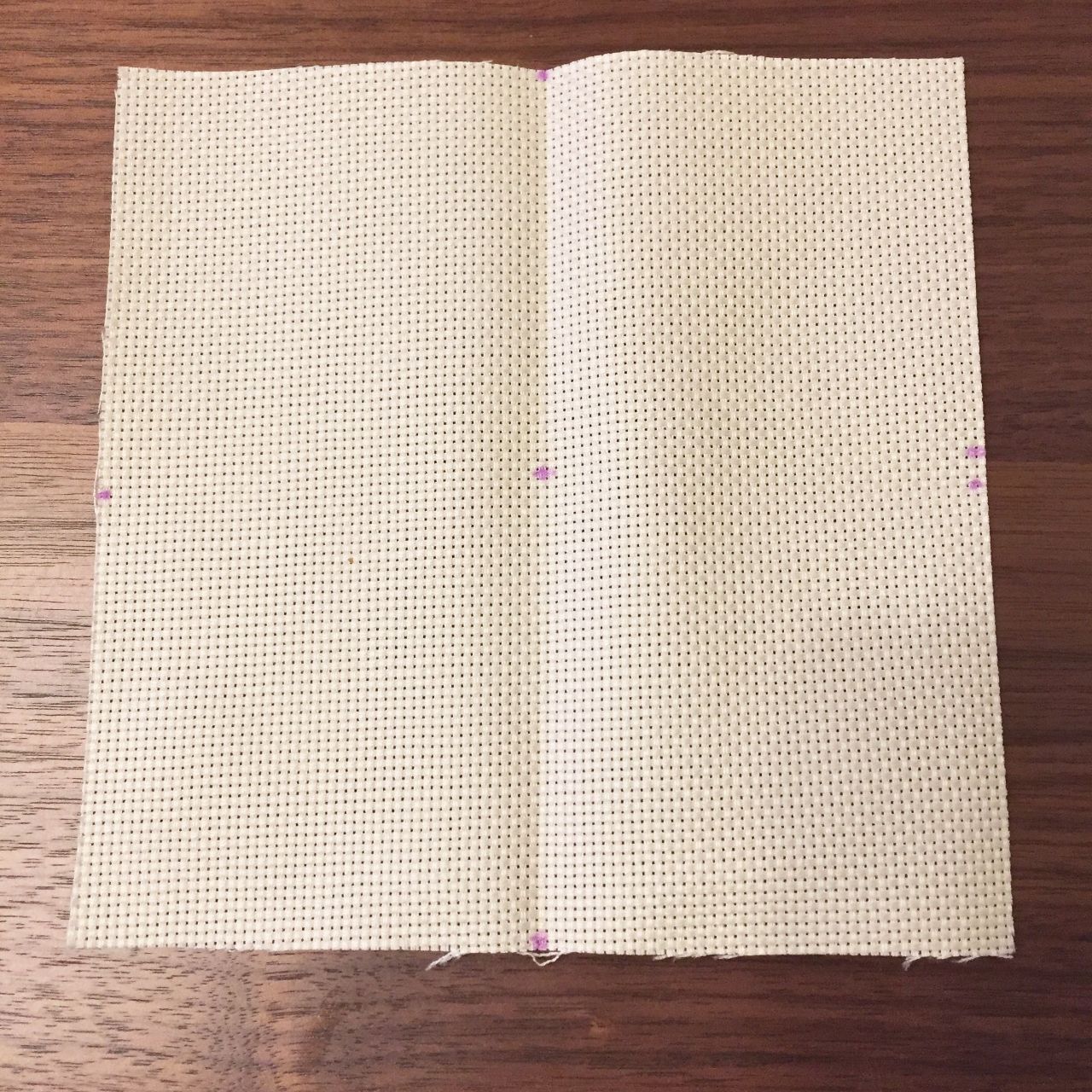 1.キットの中に入っている布に中心の印をチャコペンで付けます。