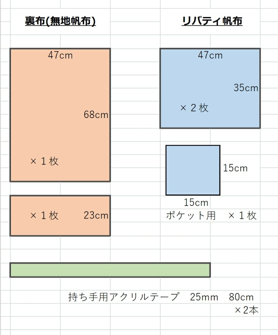 下の図の通り生地を裁断します。