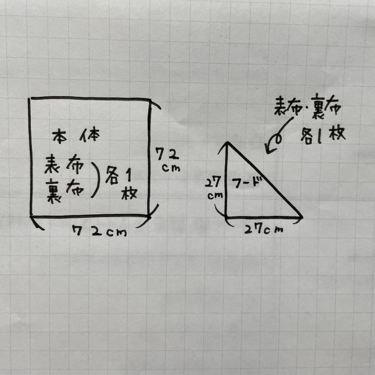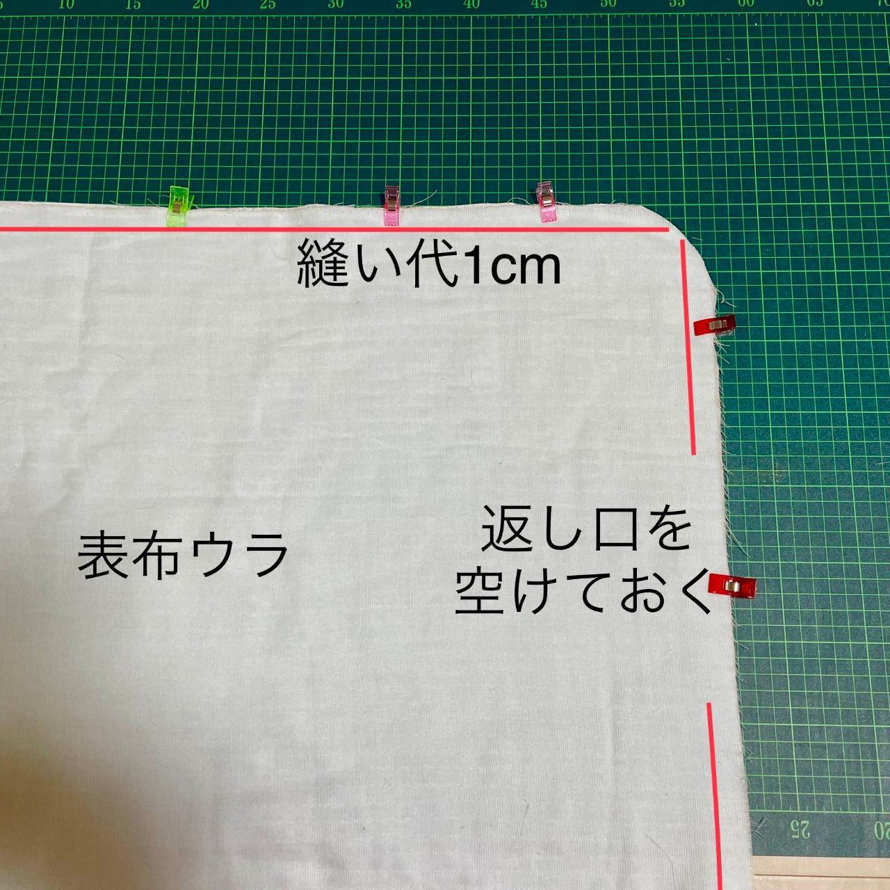 ⑤フードの表布と裏布を中表で合わせ、底辺部分のみ縫います。(縫い代1cm)