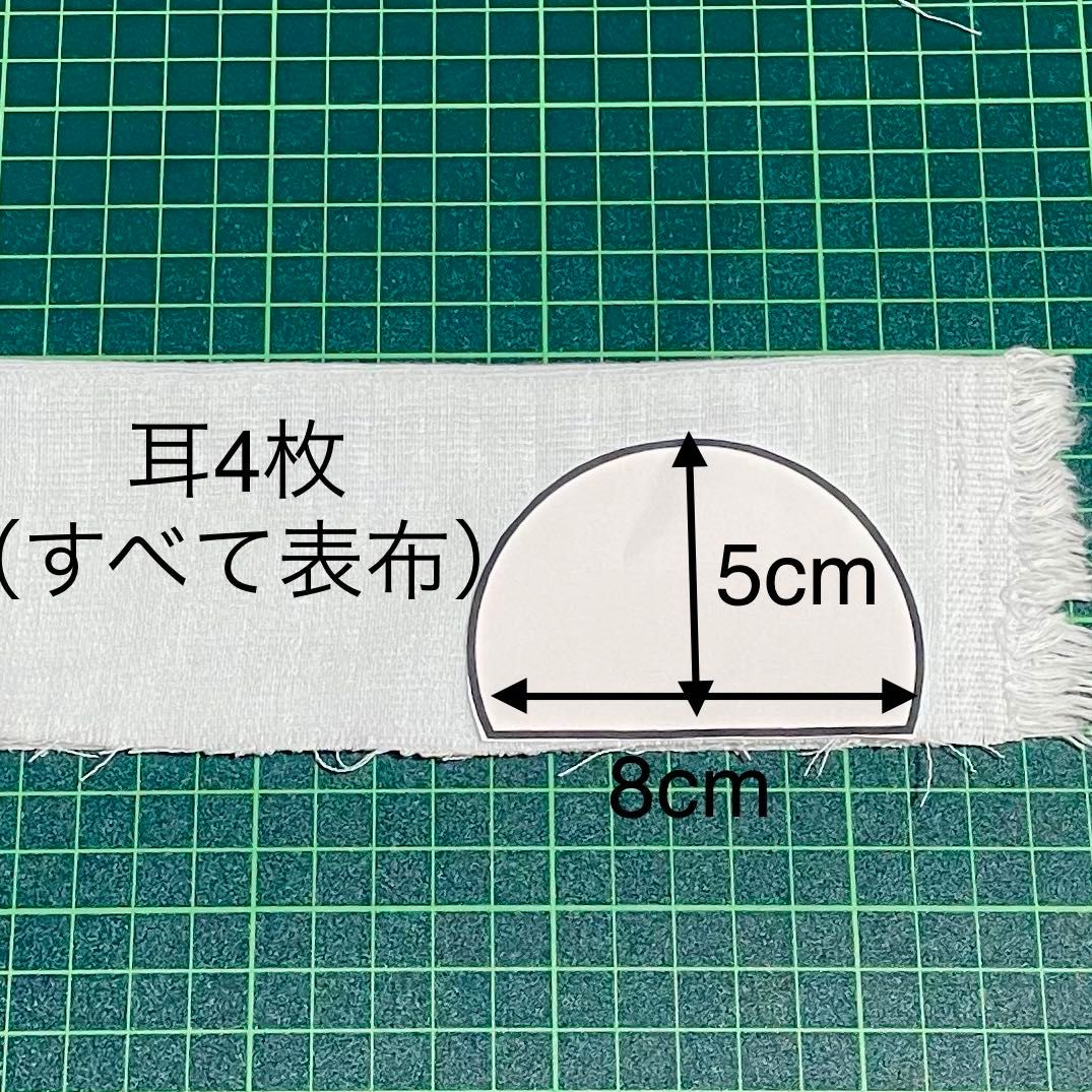③耳を2枚づつ中表で縫い合わせます(縫い代1cm)。