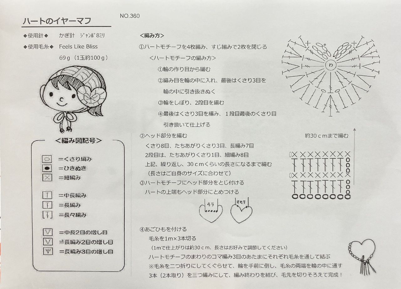昨年人気だったハートのイヤーマフを今年入荷の別の毛糸で編んでみました。編み物初心者さんにもおすすめですよ♪