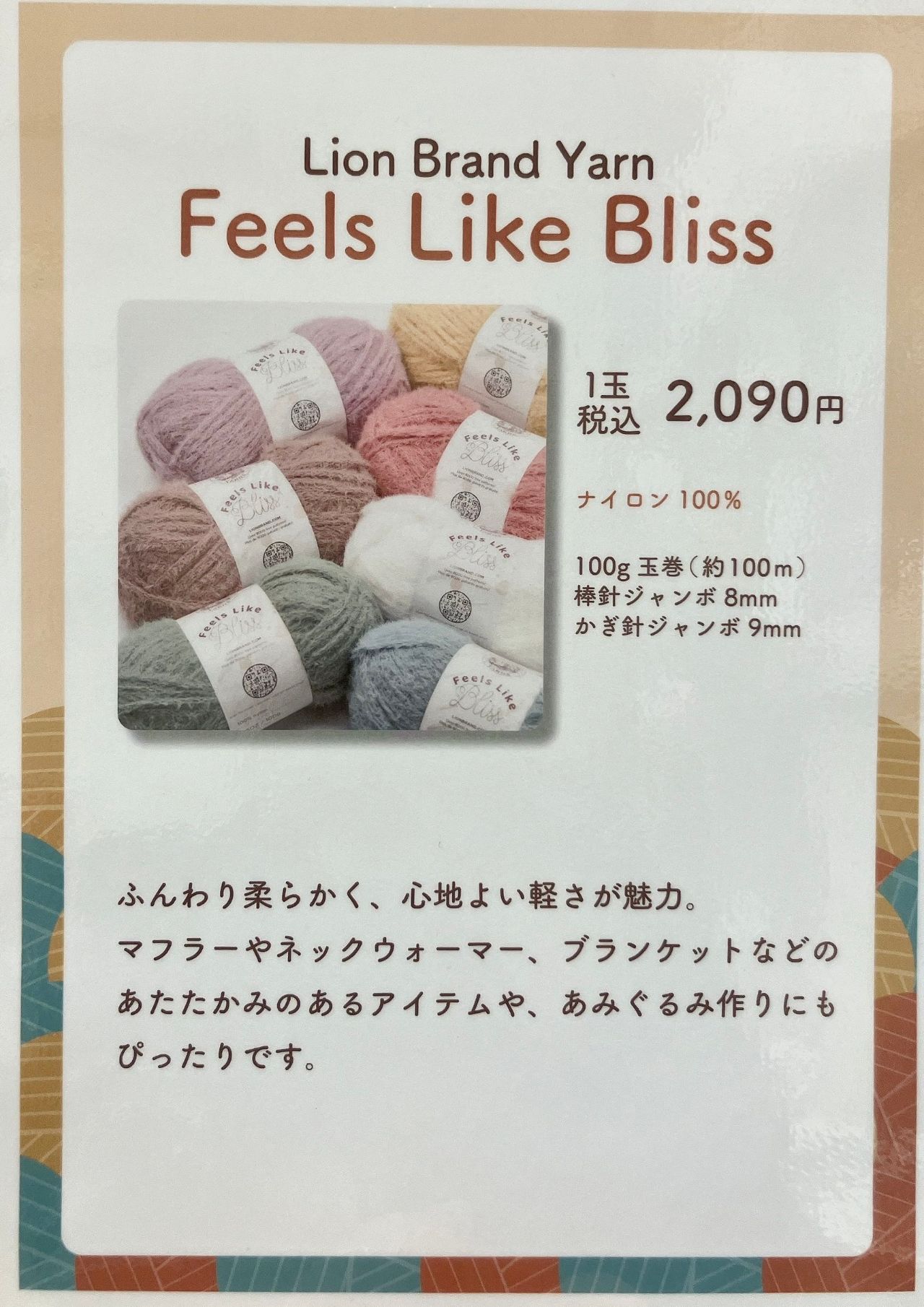 今年は今期入ってきた輸入毛糸のFeels Like Blissを使いました!