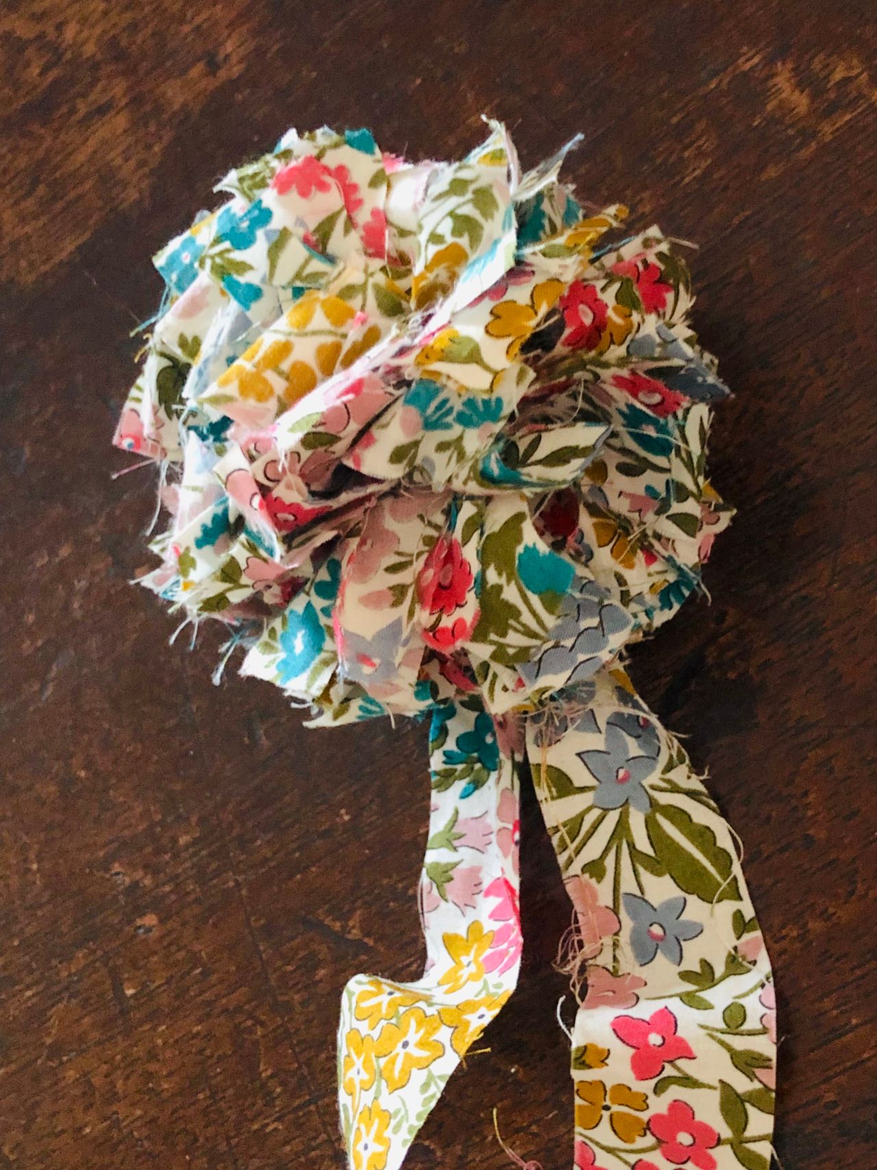 リバティ生地10cmで作る「ポンポンコサージュ」