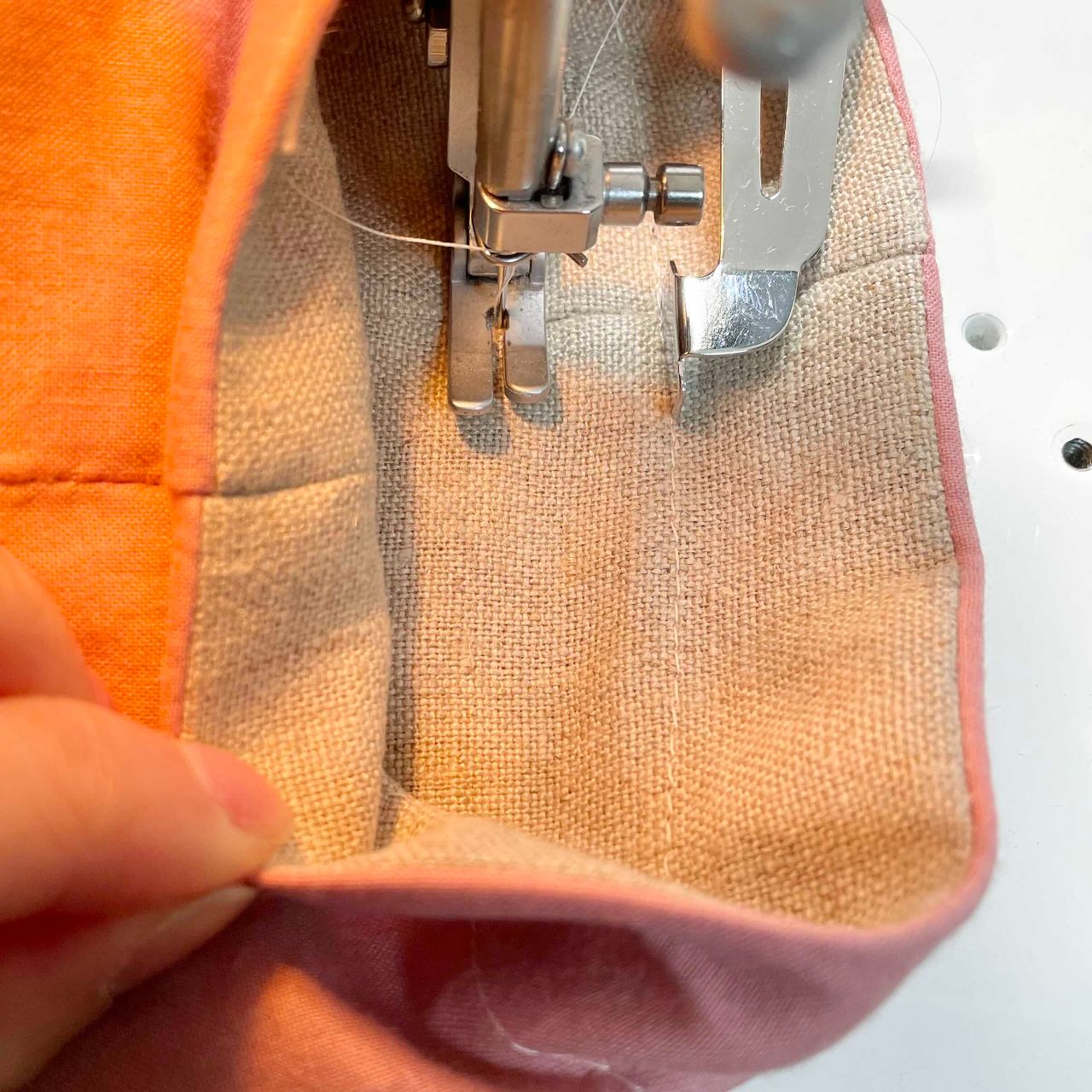 ステッチをかけるときは、袋を裏表ひっくり返し、表生地側から縫うとやりやすいです!