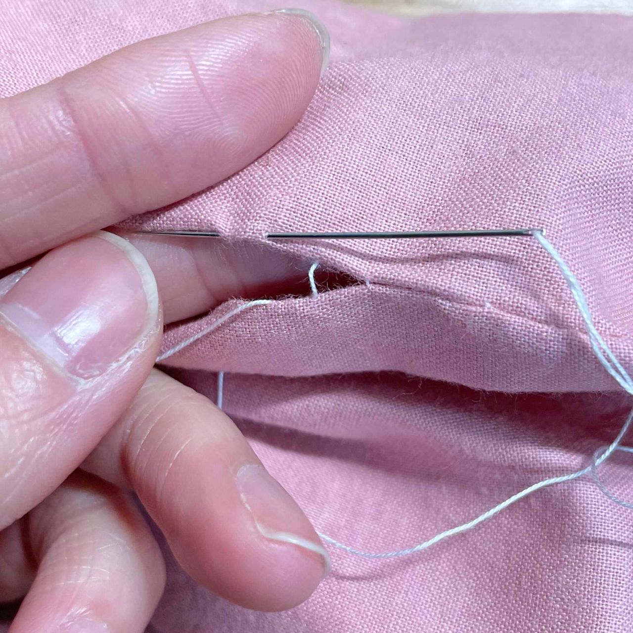 8.裏布の返し口を閉じる。ここは荒く縫い閉じて大丈夫です!