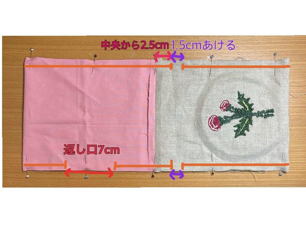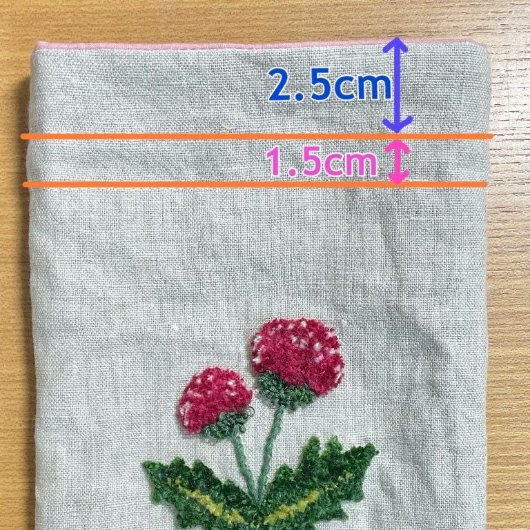 口端から2.5cmと、そこから1.5cmの2箇所にステッチをかける。