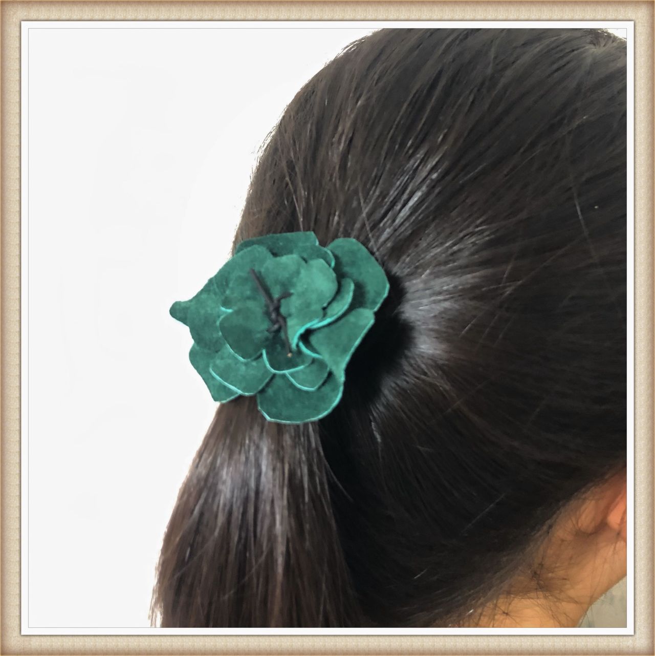 今回作ってみたのは革のハギレで作る簡単お花のヘアゴム。難しい道具は使わず、短時間で作れるのでレザークラフト初心者さんにもお手軽に製作いただけます!