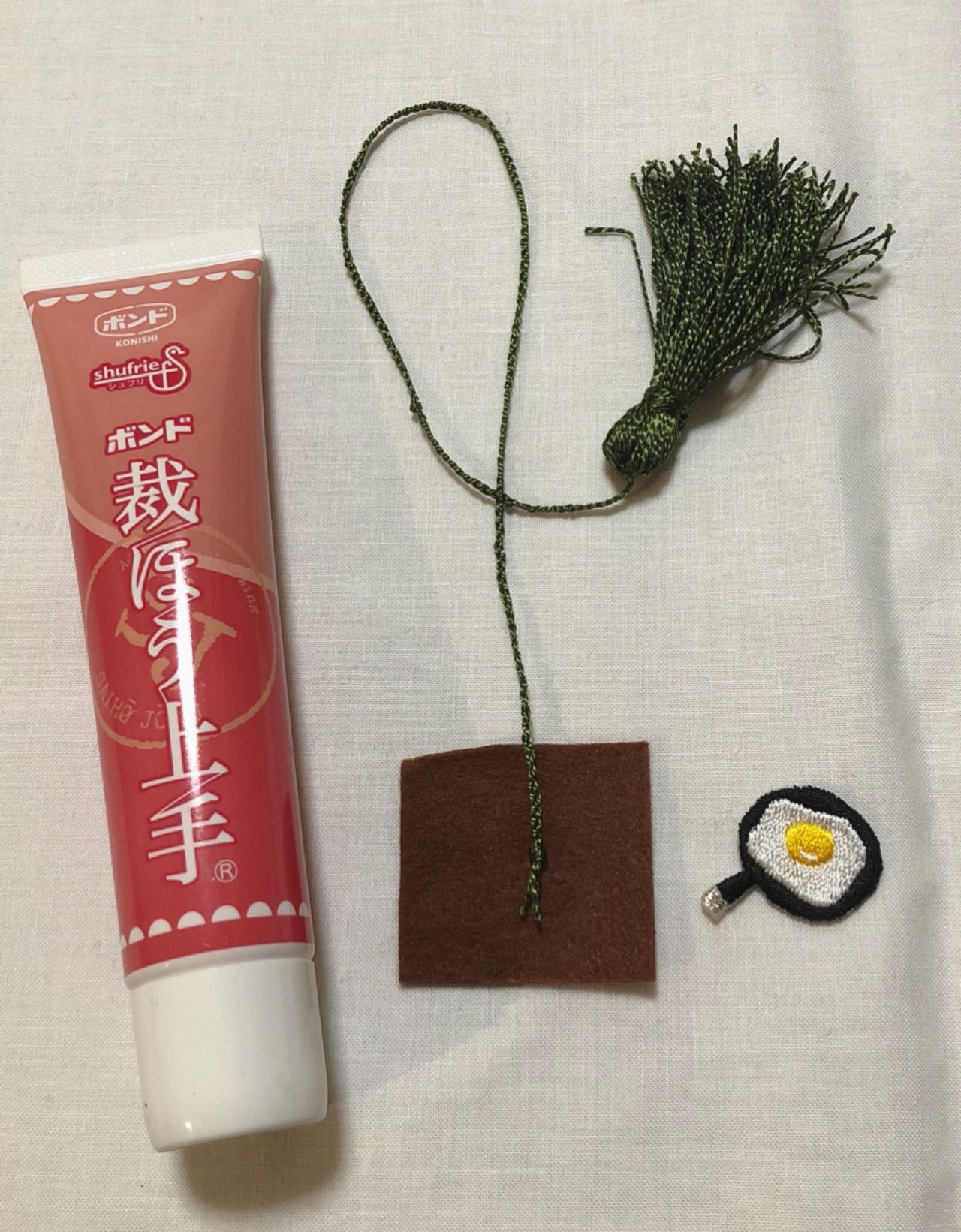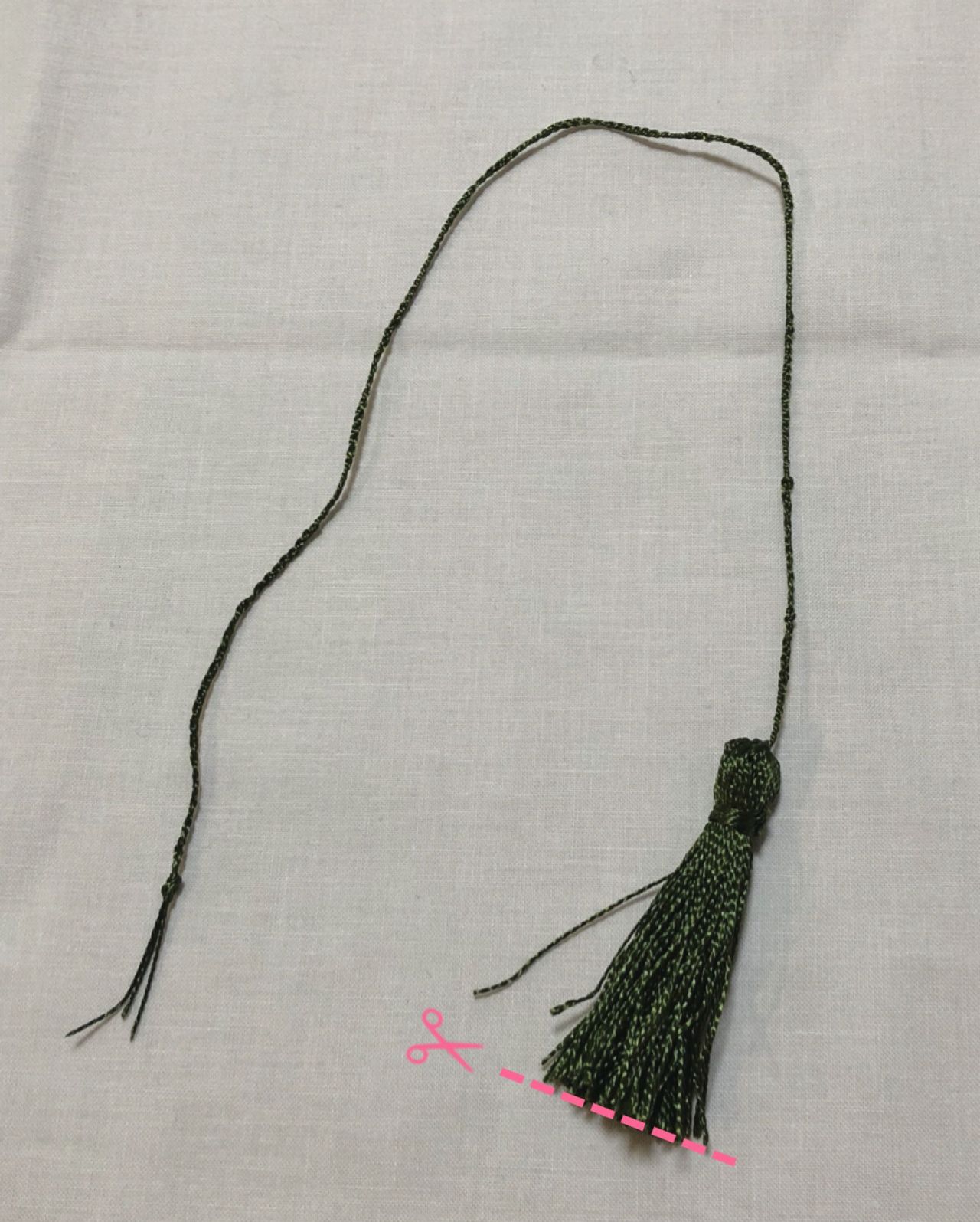 (今回はタッセルと同じ糸を三つ編みにしてつくりましたが、細いリボンや革紐を使ってもOKです)